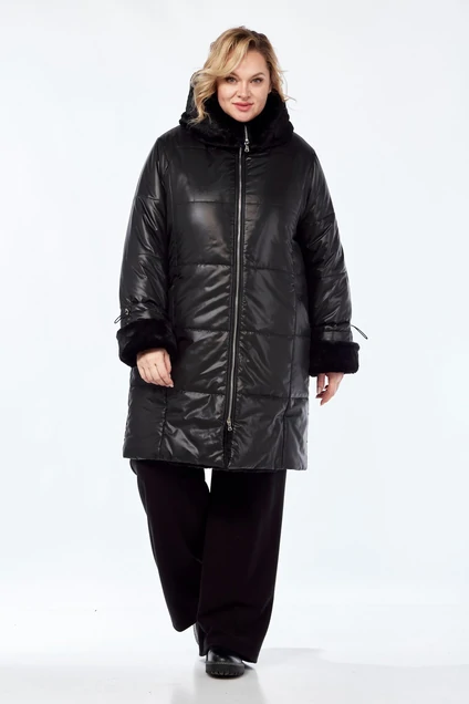 Это стильное женское пальто выполнено в утепленном варианте, что делает его идеальным выбором для холодного времени года. Модель представлена в классическом черном цвете, что обеспечивает универсальность и возможность сочетания с различными нарядами. Пальто полуприлегающего силуэта обеспечивает комфортное носение, не сковывая движения. Особенностью данной модели является центральная застежка на тесьму-молнию, которая дополнительно подчеркивает лаконичность дизайна. По переду пальто украшено рельефными швами, идущими от проймы до низа, включая обработанные карманы, что добавляет изделию текстуры и изысканности. Спинка также декорирована рельефными швами и комплектуется кулиской на талии, позволяющей регулировать посадку. Рукава втачные, одношовные, с манжетами из отделочной ткани, дополнены кулиской с резинкой и фиксатором, обеспечивающей дополнительный комфорт. Капюшон, интегрированный с центральной и боковыми частями, укомплектован отделочной тканью по краю, что придает ему завершенный и аккуратный вид. Длина пальто составляет 100 см, а длина рукава — 70 см, что делает модель практичной и функциональной в защите от погодных условий. Это пальто — идеальный вариант для женщин, ценящих утонченный стиль и качество.
