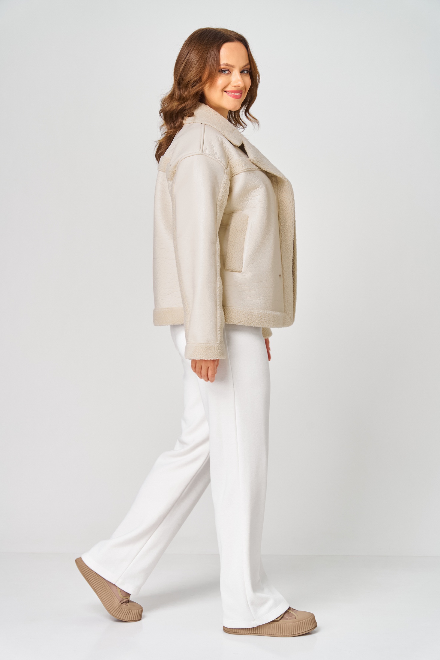 Полупальто женское прямого сидуэта с центральной застежкой на петли и пуговицы, линия плеча спущенная. Рукав втачной 2-шовный. Воротник стояче-отложной. Карманы прорезные с настрочной листочкой. В качестве отделки используются отделочные детали по спинке, переду и рукаву. Температурный режим до 0 градусов. Длина по спинке 60 см, длина рукава 56 см.