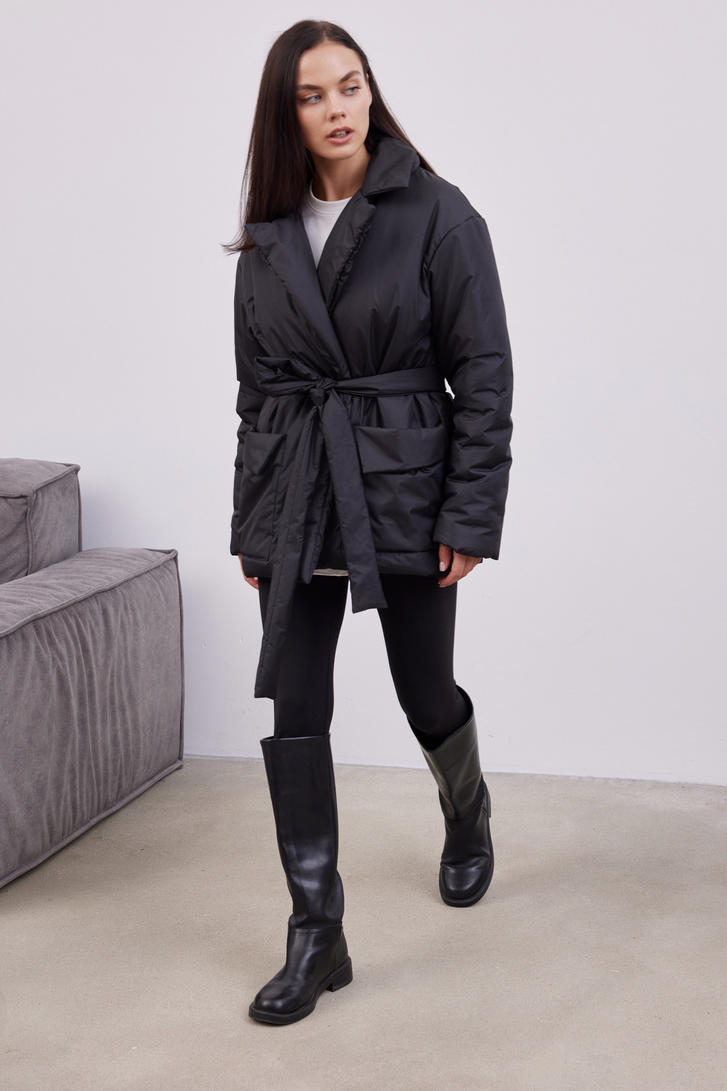 Элегантная, теплая, при этом легкая и теплая куртка. Выполнена из плотного курточного материала с бархатистой приятной водооталкивающей поверхностью. Застежка - кнопки. В комплекте есть пояс. Расчитана на температурный режим +5--15 градусов. Размеры 42-44(S) 46-48(M).