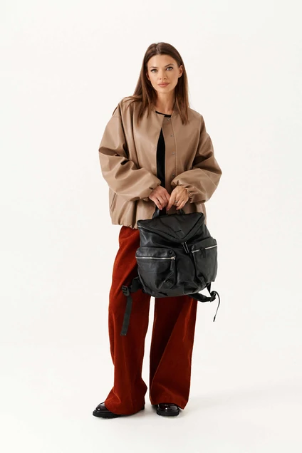 Элегантный бомбер из высококачественной искусственной кожи в нежно-коричневом оттенке. Модель выполнена в свободном стиле с опущенной линией плеч, что добавляет изделию современный акцент. Изюминка дизайна – центральная застежка на потайные кнопки и круглая горловина с воротником-стойкой, подчеркивающая аккуратность образа. Бомбер оснащен втачными рукавами с двумя швами и функциональными прорезными карманами с листочкой, обеспечивающими удобство использования. Спинка дополнена средним швом для лучшей посадки. Отличный выбор для создания стильных и практичных образов.