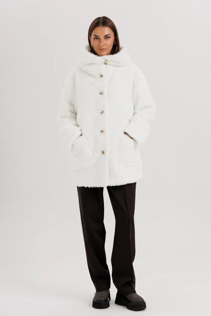 Сегодня на повестке дня – модное пальто! Поскольку половина золотой осени почти прошла, актуальность пальто достигает своих вершин. в виде однобортного пальто выше колен, стильный , в модели кокон, трендовый. Это пальто элегантно и лаконично, нет слишком замысловатых форм и броского декора. Свободный силуэт со слегка заниженной линией плеча, рубашечный покрой, застежка центральная на петли и пуговицы и необычный капюшон-воротник. На полочке наклонно расположены накладные карманы. Рукав с широкой подгибкой, которая может быть использована как отложенная манжета. Длина пальто около 80 см. Длина рукава с плечом около 73см.