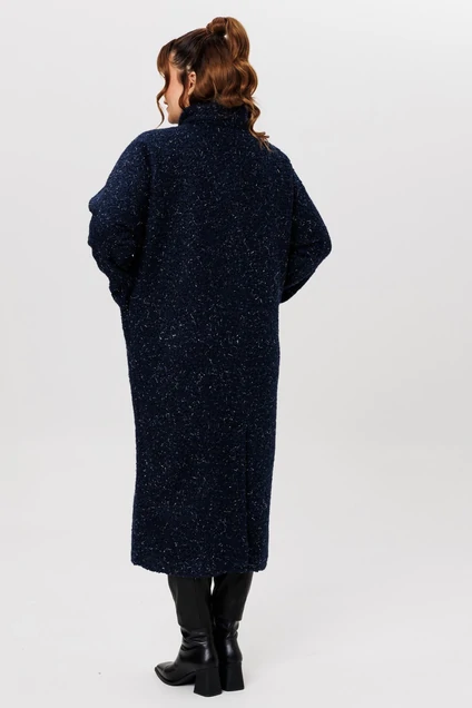 Длинное пальто из трикотажа мастхэв в осенне-весенний сезон. Пальто женское демисезонное в стиле бохо с ненавязчивым блеском. Свободный крой не сковывает движений, слегка зауженный низ подчеркивает формы, скрывая недостатки. Рукав длинный, цельнокроеный с отрезной нижней частью. Фигурные вытачки, идущие из бокового шва до центра груди, в вытачках имеются функциональные карманы. Горловина с воротником-стойкой, по переду центральная бортовая застежка на пуговицы. Спинка с центральным швом, по низу шлица. Пальто без подкладки. Изделие отлично сочетается с классическим денимом или темными брюками, или юбками любой длины. Также попробуйте накинуть такое пальто поверх любимого черного платья или просто носите со свитером. Длина изделия по спинке 119 +/-1см, длина рукава от горловины 69 +/-1 см. Подойдет на рост 170 см.