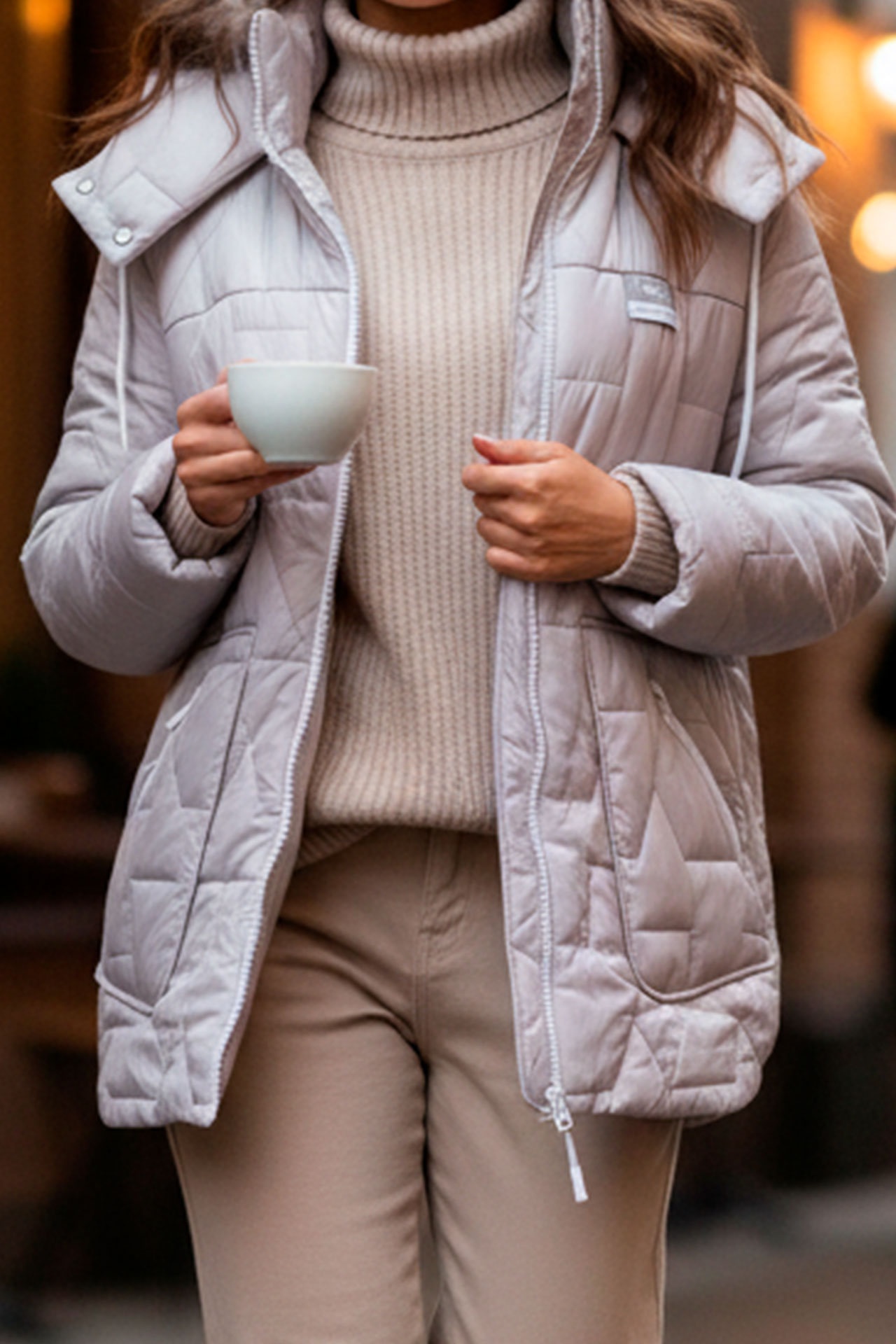 Идеальная куртка для холодного сезона — стильная, теплая и комфортная. Выполнена из стеганой плащевки на утеплителе Изософт 200 г/м², что обеспечивает тепло даже при температуре до -15°C без дополнительных слоев. Для более низких температур рекомендуется надевать под куртку теплую кофту или свитер. Куртка прямого силуэта с спущенными плечами создает современный и расслабленный образ. Фигурные накладные карманы на передней части не только функциональны, но и служат стильным акцентом. Прорезные карманы на молнии обеспечивают безопасность и удобство хранения мелочей. Спинка украшена кокеткой, что добавляет объема и элегантности. Застежка на молнию и воротник-стойка защищают от ветра и холода. Рукава одношовные втачные обеспечивают свободу движений и аккуратную посадку. Подкладка простегана с утеплителем Изософт, что делает куртку мягкой и приятной к телу. капюшон не отстегивается. Декоративный элемент(нашивка) на груди может иметь другой дизайн в тон куртки).