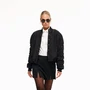 Куртка-бомбер О-образного силуэта. Изделие на стеганой подкладке, утеплитель Isosoft 100гр/м. Спущенная линия плеча. Застежка центральная на металлические кнопки. Горловина оформлена прилегающим воротником-стойкой, низ рукавов манжетами из кашкорсе. Низ изделия оформлен цельнокроеной подгибкой с вставленной эластичной тесьмой. На деталях переда наклонные прорезные карманы с листочкой с втачными концами. Рукав длинный, одношовный. По переду, спинки и рукаву прострочены строчки вместе с эластичной тесьмой, для эффекта сборки.