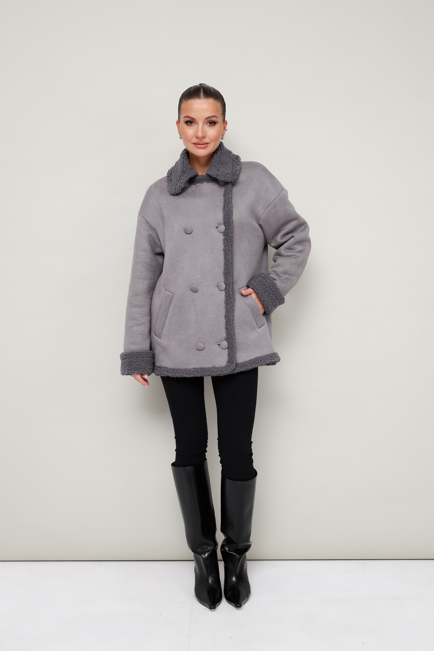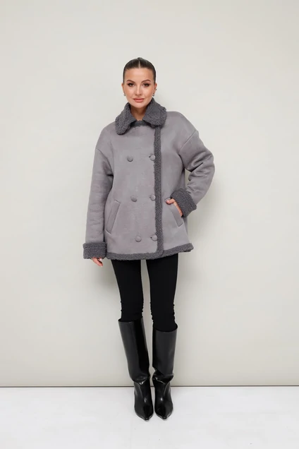 Дубленка декорирована искусственным мехом, который придает образу благородную мягкость и уют.