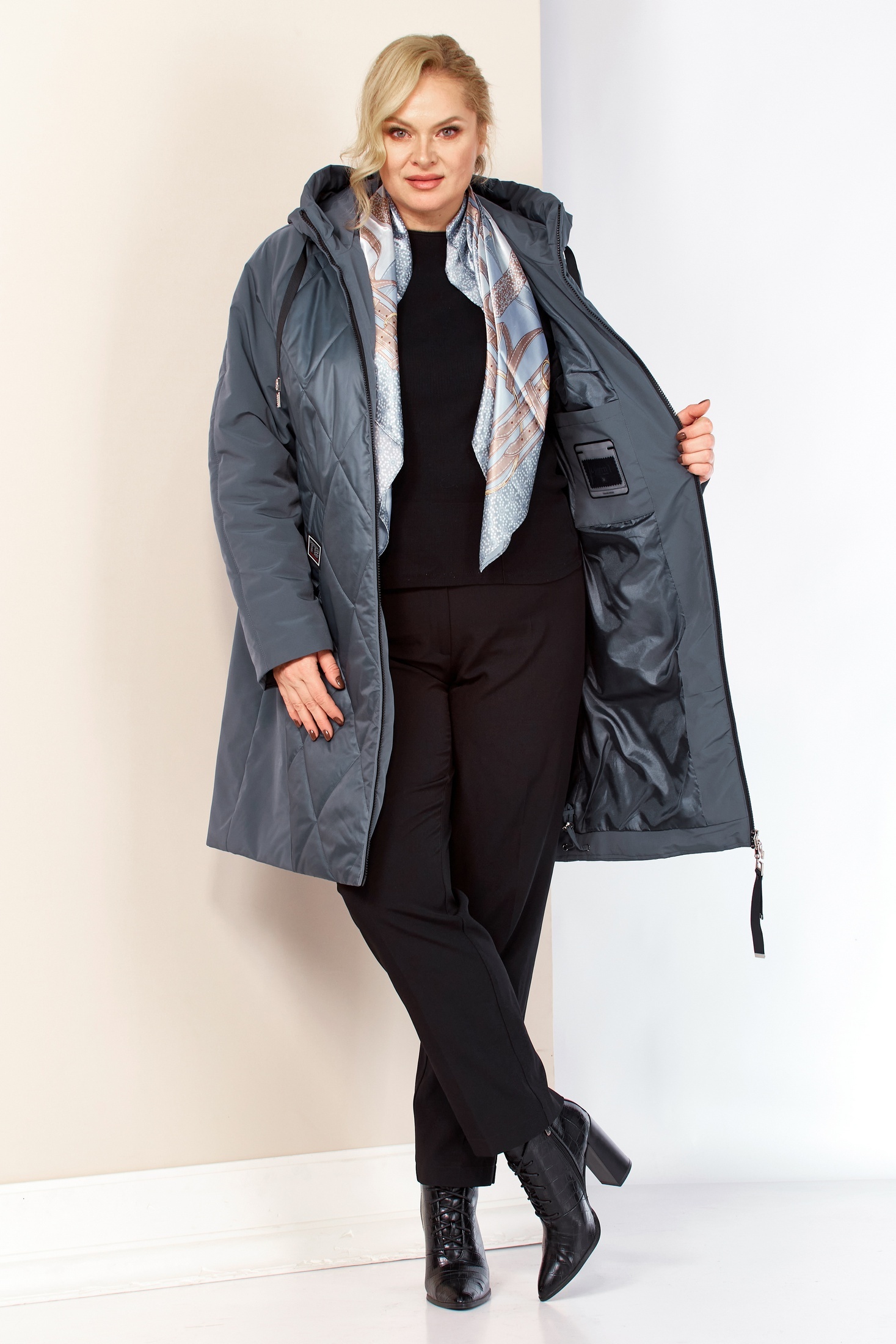 Практичная удлинённая куртка для комфортных городских образов в прохладную погоду. Куртка выполнена в прямом, слегка приталенном силуэте, который мягко подчёркивает фигуру и визуально вытягивает пропорции. Длина до середины бедра обеспечивает дополнительное тепло и комфорт, не сковывая движений. По переду двухбегунковая молния позволяющая расстёгивать изделие как сверху, так и снизу, обеспечивая удобство в движении и при посадке. Куртка дополнена прорезными боковыми карманами. Рукав реглан. Капюшон не съемный, регулируется декоративным шнуром. Низ изделия на регулируемой кулисе, для регулировки посадки и дополнительной защиты от холода воздуха. С внутренней стороны куртки имеется внутренний карман предназначенный для хранения личных вещей и мелочей.