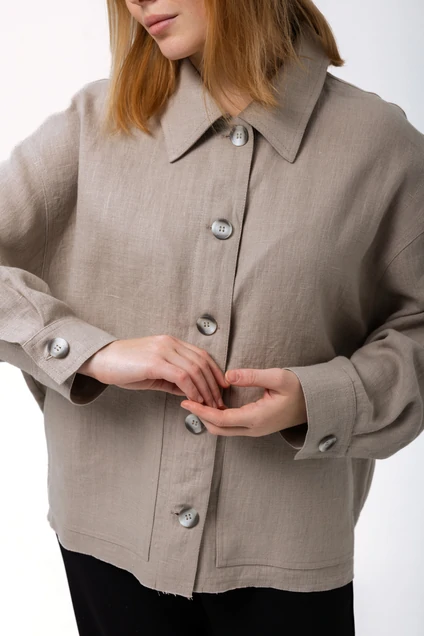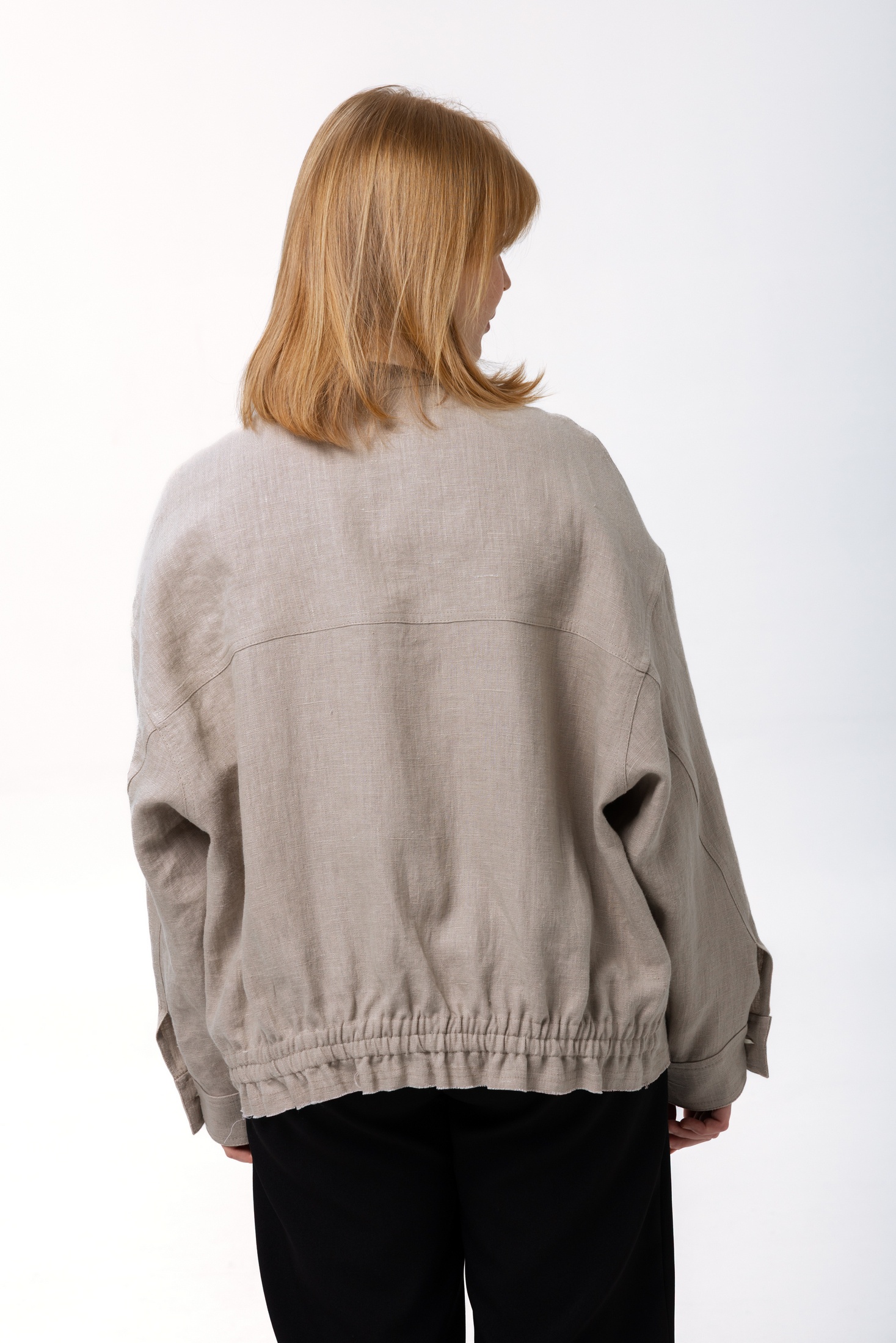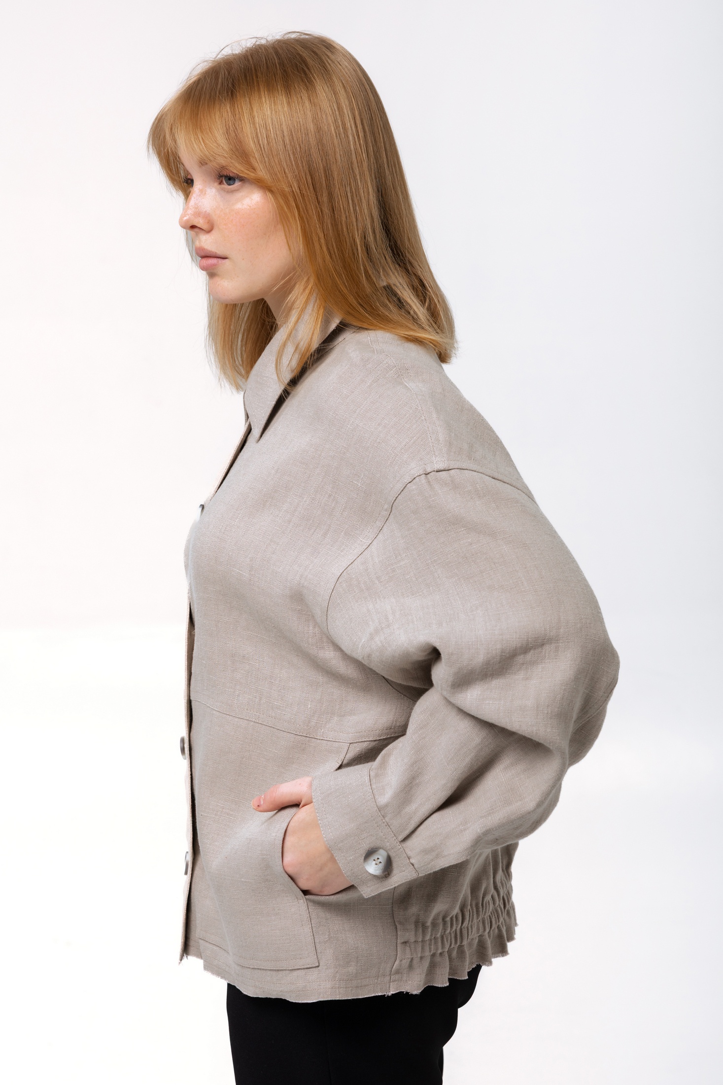 Эта стильная куртка свободного кроя выполнена в нежно-бежевом оттенке, идеально подходящем для создания утонченного образа в прохладную погоду. Куртка дополнена классическим воротником и пуговицами на передней панели, что придает изделию элегантный вид. Эластичный пояс на спинке обеспечивает комфортное облегание и добавляет объема. Этот универсальный элемент гардероба подойдет как для повседневных, так и для более формальных событий.