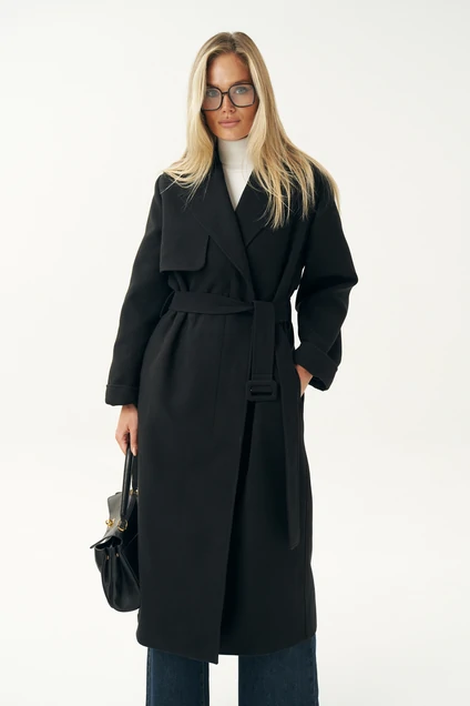 Пальто женское выполнено в классическом черном цвете, что делает его универсальной основой любого гардероба. Оно легко сочетается с деловой одеждой, повседневными образами и даже с вечерними нарядами. Черное пальто всегда было и остается символом утонченности. Пальто женское, прямого силуэта, из пальтовой ткани, на подкладке, со смещенной относительно центра переда застежкой на 3 пуговицы, (размер и цвет фурнитуры может незначительно отличаться от фото), предназначено для повседневной носки. Пальто со съемным поясом с пряжкой.