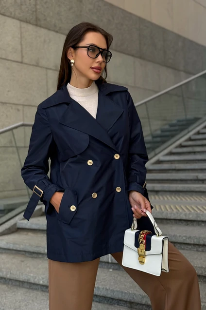 Дизайн с двубортной застёжкой, аккуратными лацканами и декоративными пуговицами подчеркивает классику, а современные детали — кокетки и пряжки на рукавах — добавляют модный акцент. Плащ женский, свободного силуэта, из плащевой ткани, на подкладке, с двубортной застежкой на 2 петли и декоративные пуговицы (размер и цвет фурнитуры может незначительно отличаться от фото), для повседневной носки.