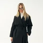 Укороченный плащ URS — это элегантная демисезонная модель, которая подойдёт для весны и осени. Короткий фасон и свободный силуэт делают плащ удобным и универсальным: его можно носить каждый день и использовать как часть делового гардероба.