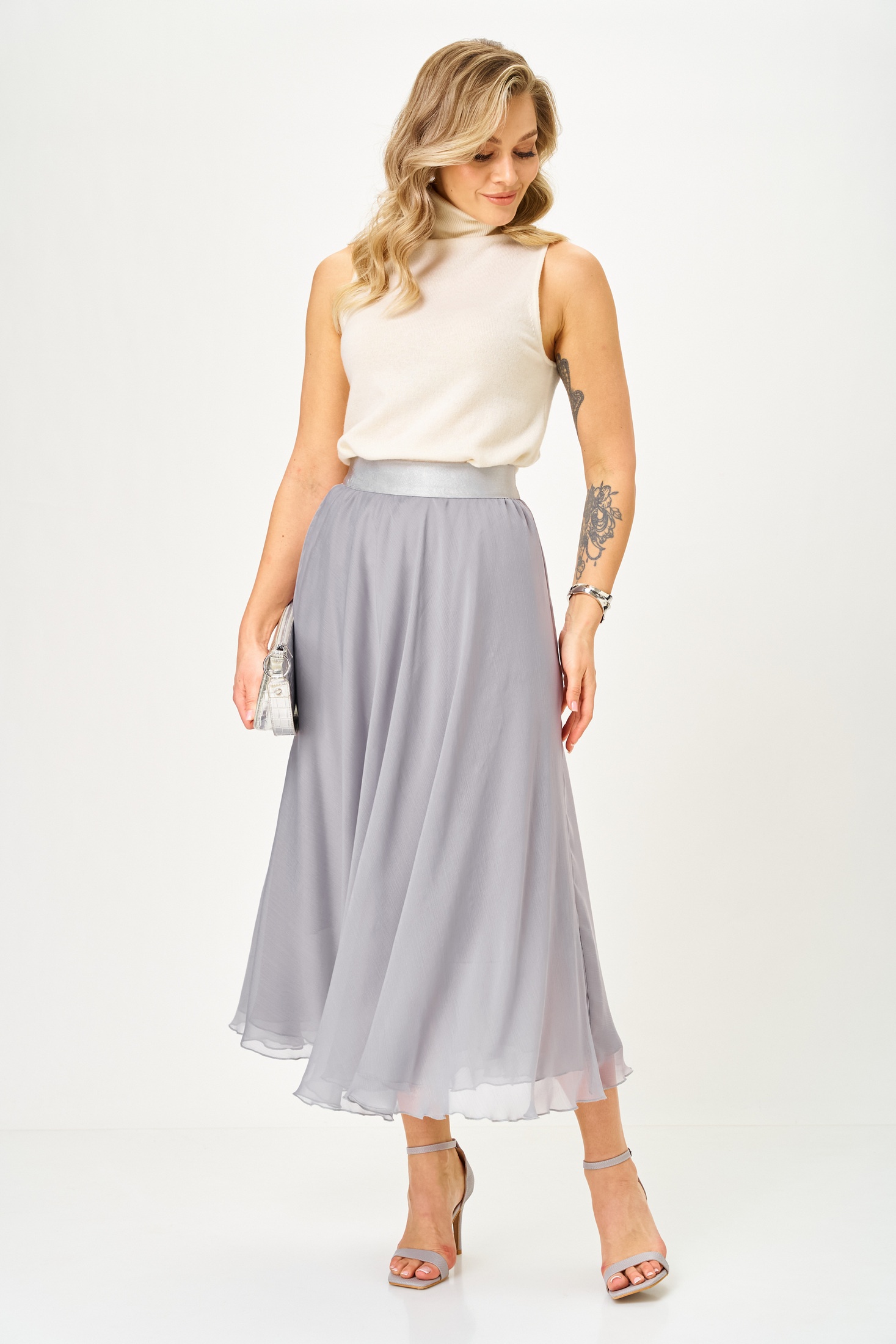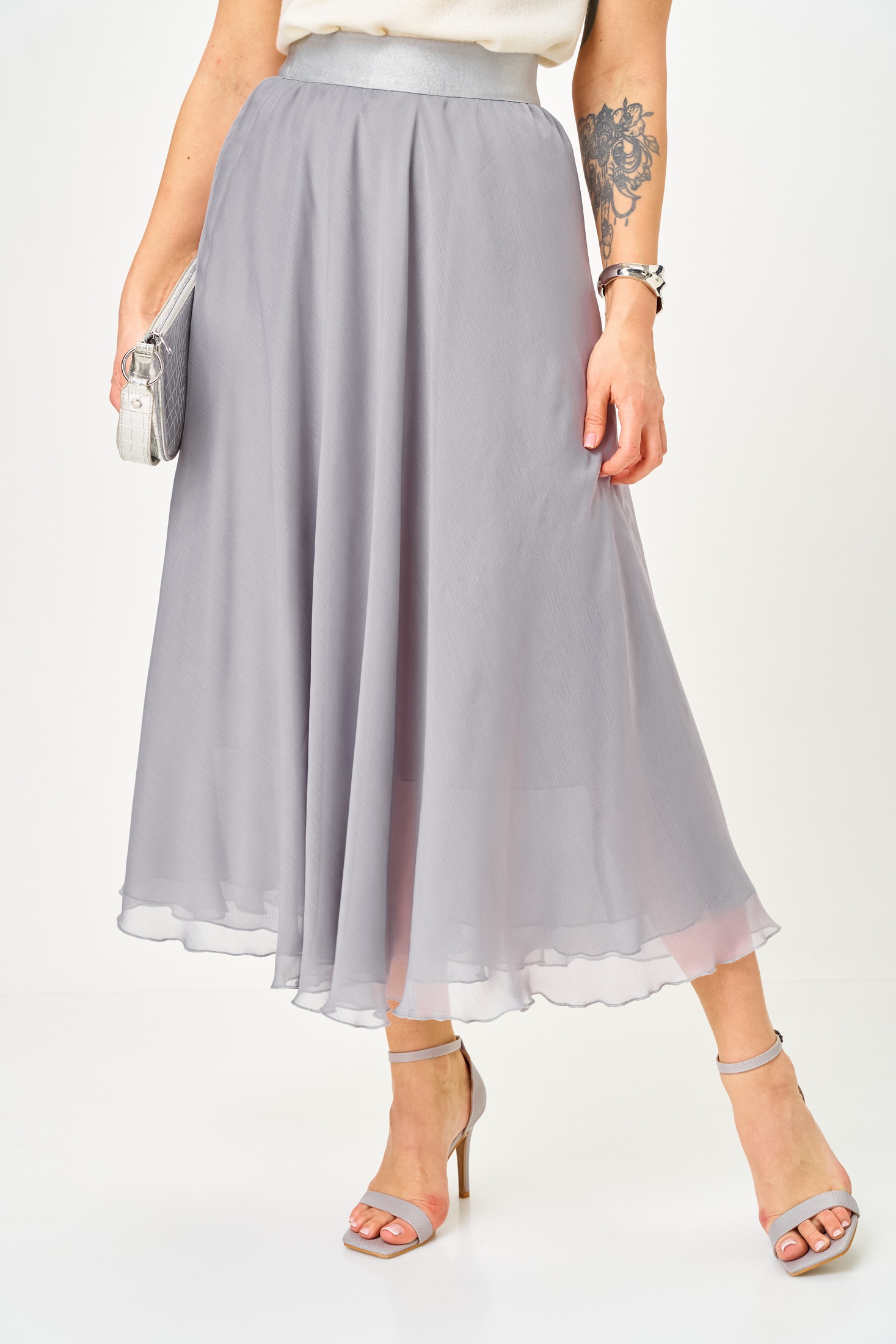Юбка 334 жемчуг Anna Majewska — нежный и изящный выбор для вашего гардероба. Коллекция бренда Anna Majewska привлекает внимание своим уникальным дизайном. Изготовленная из тонкого шифона, юбка обеспечивает легкость и комфорт в ношении, идеально подходя для летнего сезона. Фасон полусолнце и трёхслойная структура добавляют изысканности, а декоративная эластичная тесьма привносит оригинальность и стиль в повседневные и торжественные выходы. Длиной до щиколотки, эта юбка отлично подчеркнет вашу женственность. Застежка отсутствует, что делает изделие еще более универсальным и удобным. Серый оттенок юбки добавляет элегантности и легко комбинируется с другими элементами гардероба.