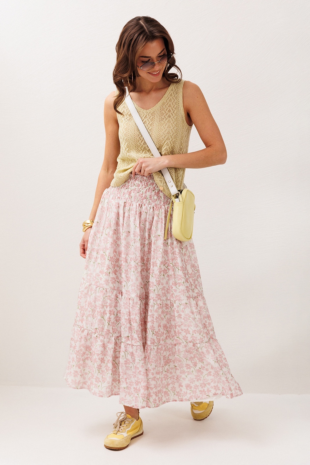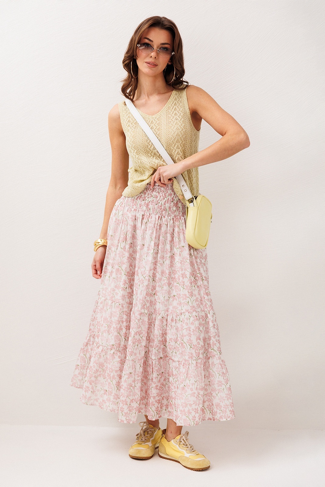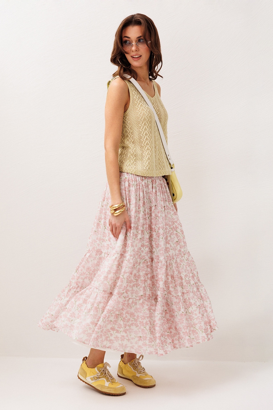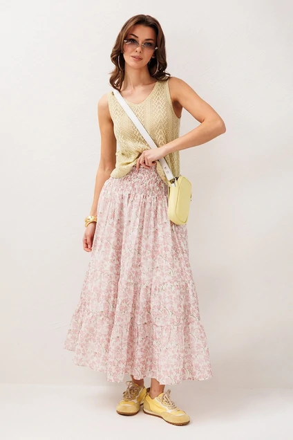 Юбка 3299 розовые цветы BUTER — это восхитительное дополнение к вашему весенне-летнему гардеробу. Коллекция бренда BUTER предложит вам стильную шифоновую юбку А-силуэта с притачной кокеткой и эластичной резинкой для комфортной посадки. Два слегка присборенных волана добавляют динамики и лёгкости образу. Юбка выполнена из полиэстера, что обеспечивает лёгкость и простоту в уходе. Цветочный рисунок делает её идеальной для повседневных прогулок и особых мероприятий во время тёплых сезонов. Модель оснащена подкладкой для дополнительного комфорта, а длина макси подойдет для создания женственного и романтичного силуэта.
