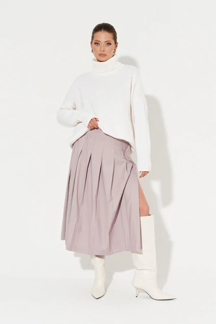 Юбка А-силуэта с оригинальным кроем от бренда Ketty станет идеальным решением для любительниц женственности и делового стиля. Юбка женская миди с поясом фиксируется сбоку на одну пуговицу в тон. Сбоку сделан акцент в виде разреза и застежек-пуговиц. Юбка женская превосходно сидит по фигуре и корректирует область талии. Юбка декорирована плиссировкой с широкими складками и создает дополнительный объем и легкость. Длинная юбка с разрезом имеет подкладку для комфортной носки. Юбка миди предполагает многообразие вариантов для комбинирования: с джемпером, базовой рубашкой, водолазкой, футболкой. Идеально подойдёт для прогулок, работы, отдыха, свиданий, офиса, праздников и для повседневной носки. В женской юбке вы будете чувствовать себя уверенно и комфортно!