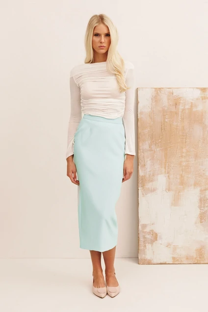 Юбка 40008-2 KOKOdea — это воплощение утонченного стиля из коллекции бренда KOKOdea. Изготовленная из полиэстера с добавлением вискозы и спандекса, эта юбка обладает превосходной эластичностью и комфортом. Удлиненный силуэт и классический дизайн делают её идеальной для повседневного и офисного стиля. Пояс по талии и застёжка на потайную молнию с пуговицей обеспечивают отличную посадку. Светло-голубой цвет освежает образ, а средний шов с разрезом по спинке добавляет оригинальности. Подходит для сезона весна-лето, прекрасно сочетается с различными элементами гардероба.