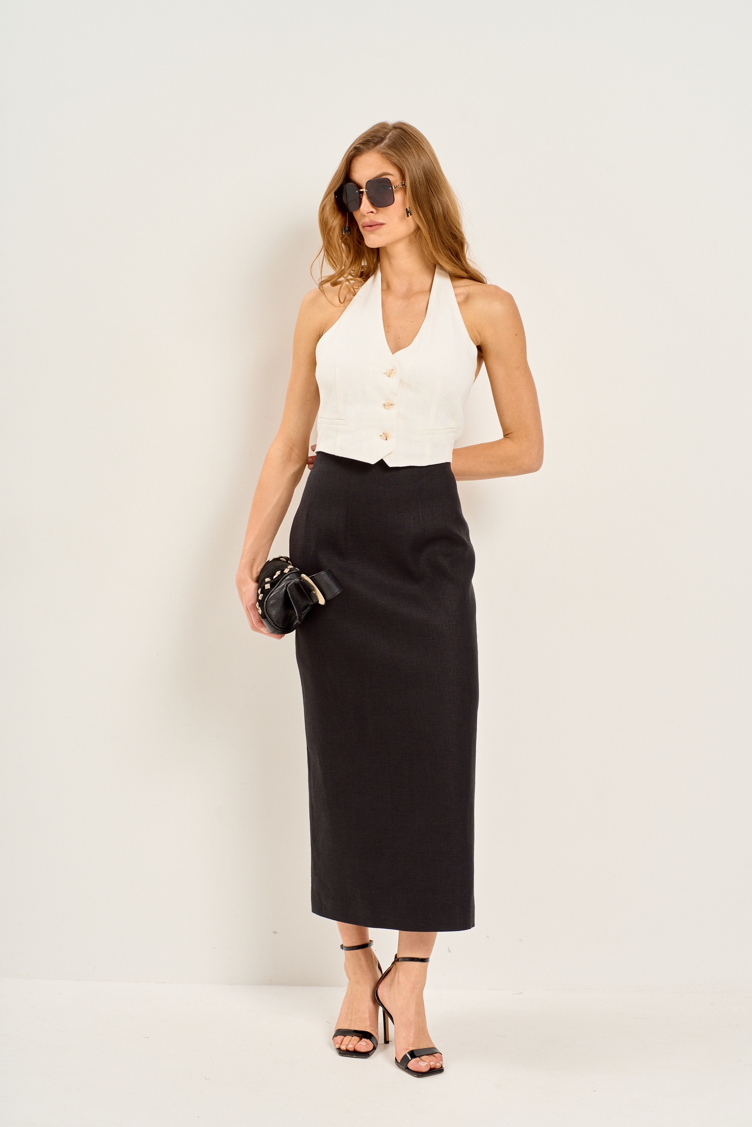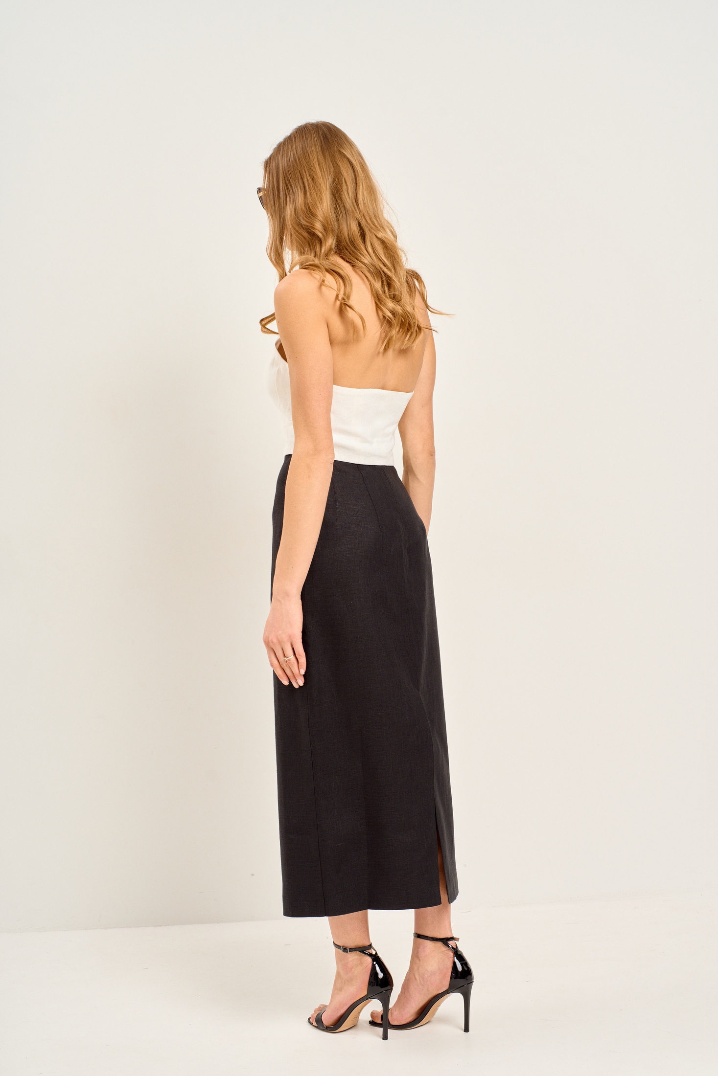 Юбка 1005 черный Mar.s design выполнена из комбинации натуральной вискозы и льна, обеспечивающей комфорт и стиль. Коллекция бренда предлагает миди-длину и зауженную к низу форму, идеальную для офисного и повседневного стиля. Задняя часть юбки оборудована аккуратным разрезом и застёжкой на молнию, что добавляет удобство и элегантность. Обработанные вытачки и верхний срез добавляют изысканности в общий дизайн. Черный цвет изделия делает его универсальным дополнением к любому гардеробу, а плотный материал обеспечивает идеальную посадку. Прекрасный выбор для сезона осень-зима.