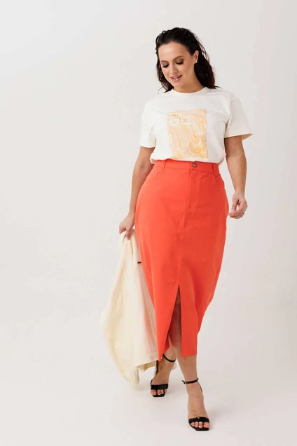 Юбка 1955 оранжевый MisLana — это стильный выбор для повседневного гардероба. Коллекция бренда MisLana предлагает вам юбку из высококачественного хлопка с добавлением полиэстера и эластана, что обеспечивает комфортную посадку и долговечность. Фасон слегка зауженной к низу юбки с фигурным подрезом и разрезом передает современный вид. Эта модель оснащена удобными карманами и застежкой на молнию с гульфиком и откоском. Яркий оранжевый цвет добавит свежести в ваш образ, а двойные отделочные строчки служат элегантным украшением. Подойдет для весенних и летних сезонов, идеально сочетается с различными топами и футболками.