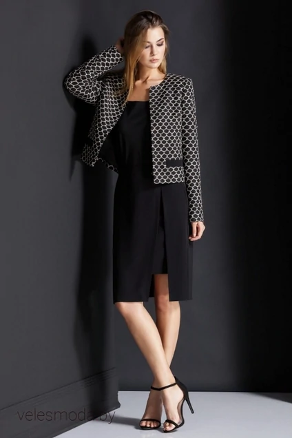 Стильная юбка на обтачке по верхнему шву длиной до колена. Передняя часть юбки двухслойная. Верхняя часть длиннее и с вертикальным высоким разрезом. Застёжка на потайную молнию. Юбка на подкладке.