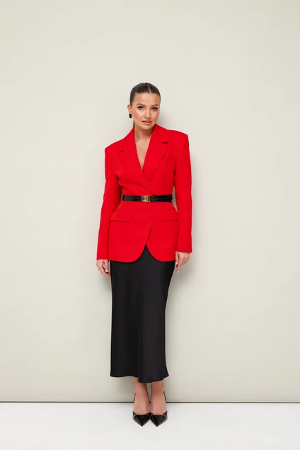 Элегантная юбка миди черного цвета, выполненная по современному крою «по косой». Это делает её идеальным выбором для создания стильного и женственного образа. Модель обладает удобной посадкой благодаря широкому поясу на обтачке. Застежка юбки находится в боковом шве и выполнена в виде потайной тесьмы-молнии, что добавляет изделию аккуратности и утонченности. Эта юбка будет гармонично смотреться как в деловых, так и в более неформальных ансамблях.