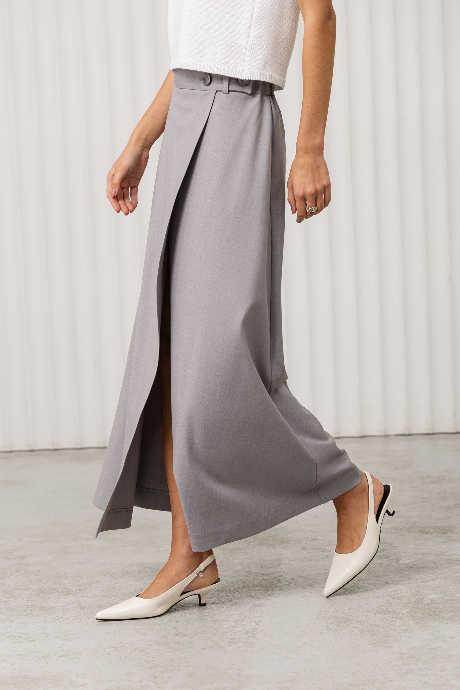 Дизайн: юбка-карандаш с высокой посадкой и небольшим разрезом спереди. Декоративные пуговицы на поясе придают изделию оригинальность и стиль;