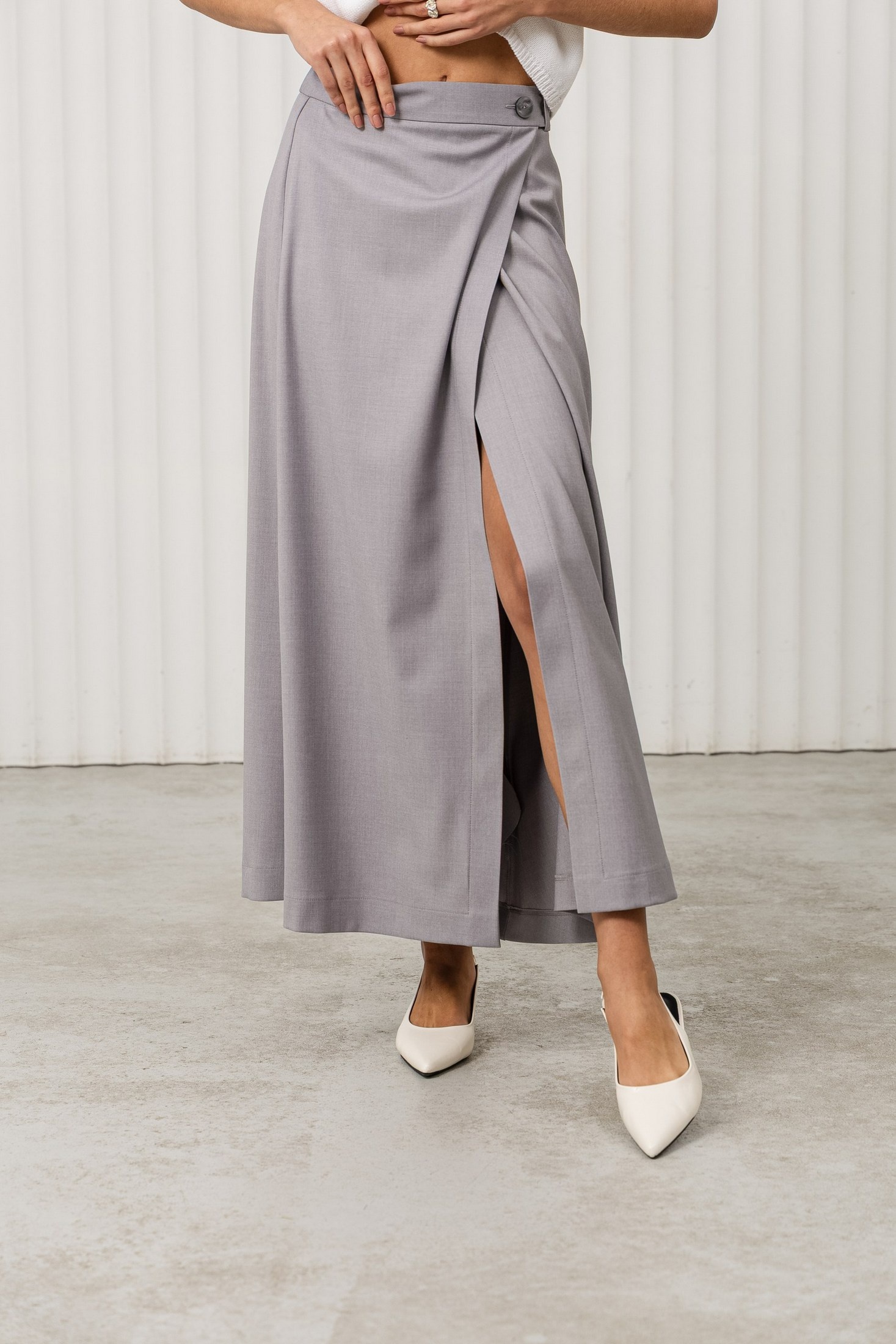 Юбка отлично сочетается с блузками, как на фото, свитерами или рубашками. Для завершения образа подойдут туфли на каблуке, лодочки или стильные сандалии. Дополните образ минималистичными аксессуарами, такими как тонкий ремень или серьги.