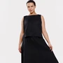 Элегантная черная юбка-трапеция выполнена из качественной ткани с матовым финишем. Модель на эластичной резинке обеспечивает идеальную посадку и комфорт при носке. Свободный покрой делает эту юбку идеальным выбором для ежедневных и вечерних образов. Особый шик придает декоративный разрез, добавляющий изящества и уникальности. Без карманов.