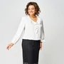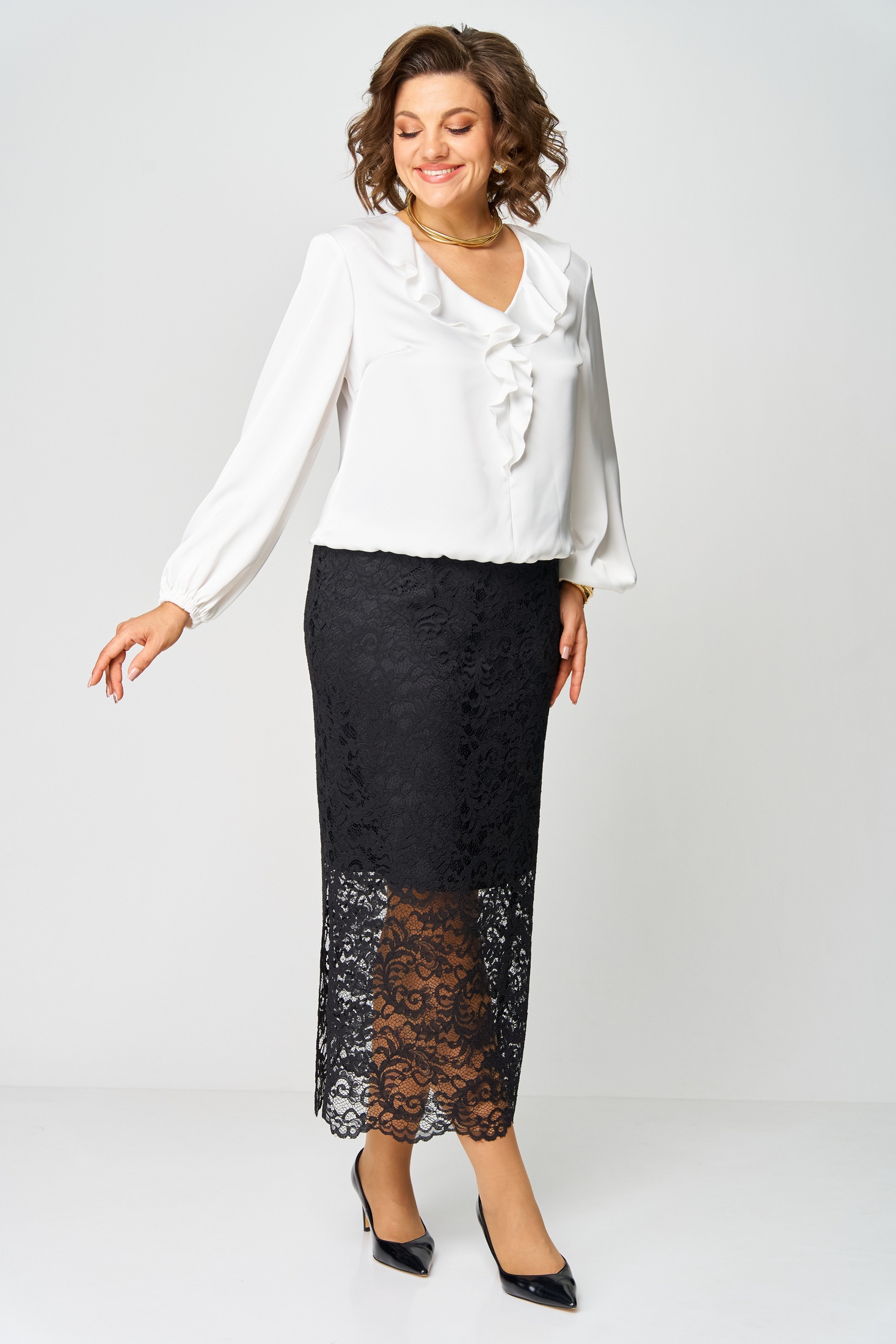 Юбка женская прямого силуэта из гипюра, на притачном поясе, длиной миди. В левом боковом шве застежка на потайную молнию. Юбка на подкладке из атласа. В боковых швах юбки разрезы.