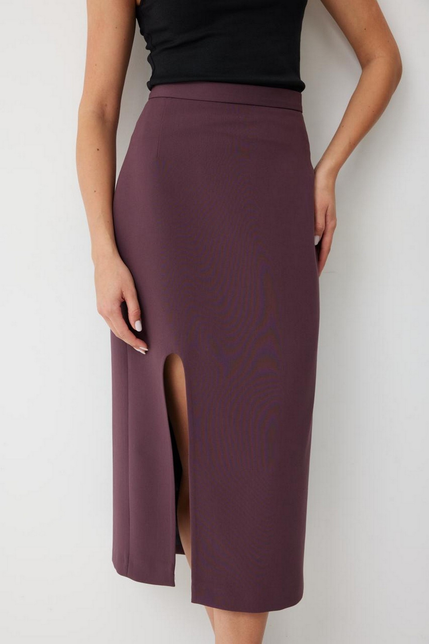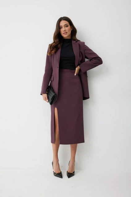 Женская юбка полуприлегающего силуэта длины миди, которая идеально подходит для создания как делового, так и вечернего образа. Юбка выполнена из качественной костюмной ткани и посажена на поливискозную подкладку, обеспечивающую безупречную посадку. Притачной пояс идеально фиксирует модель, подчеркивая талию. Главная изюминка модели — это изысканный округлый вырез длиной 40 см, расположенный с правой стороны переднего полотнища. Юбка застегивается на потайную молнию в среднем шве спинки/ Сочетайте эту юбку с элегантным жакетом М665 для статусного образа или с шелковым топом для вечернего выхода. Будьте в центре внимания, сохраняя безупречный стиль.