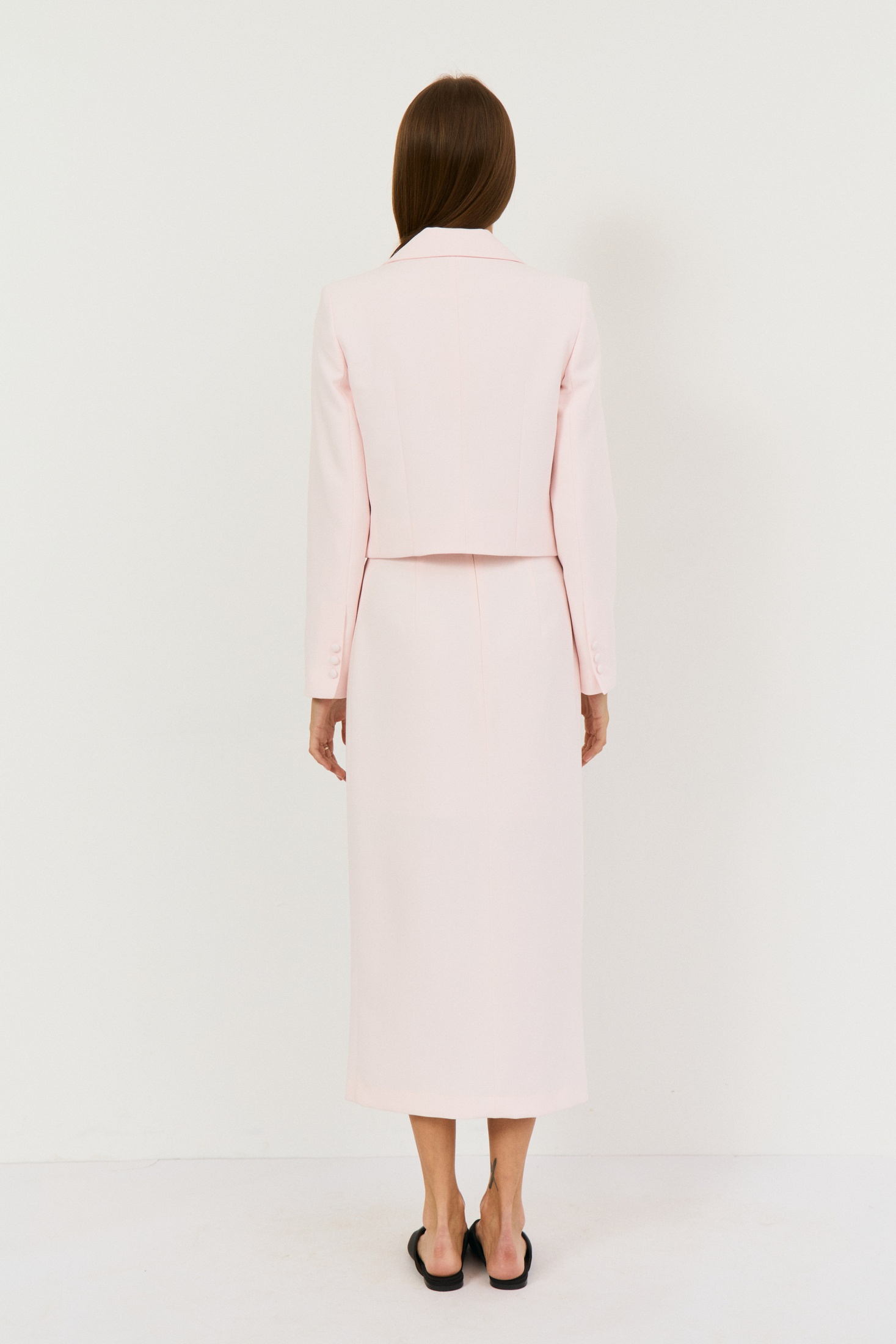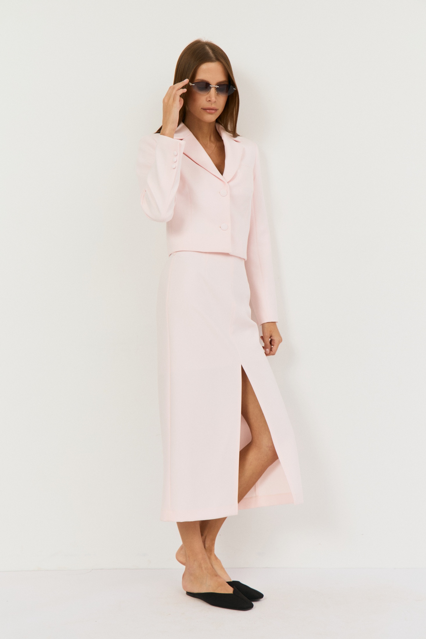 Юбка 2485 пудра The name выполнена из костюмной ткани с добавлением полиэстера, вискозы и спандекса, что обеспечивает комфорт и эластичность. Коллекция бренда The name предлагает этот стильный предмет гардероба в нежном розовом цвете, идеально подходящем для весенне-летнего сезона. Юбка средней длины 87 см с высоким разрезом и скрытой молнией сзади добавляет образу изысканности и легкости. Подкладка из полиэстера и вискозы гарантирует удобство в течение всего дня. Этот предмет одежды прекрасно сочетается с различными элементами гардероба, от топов до жакетов, создавая элегантный офисный или повседневный стиль.