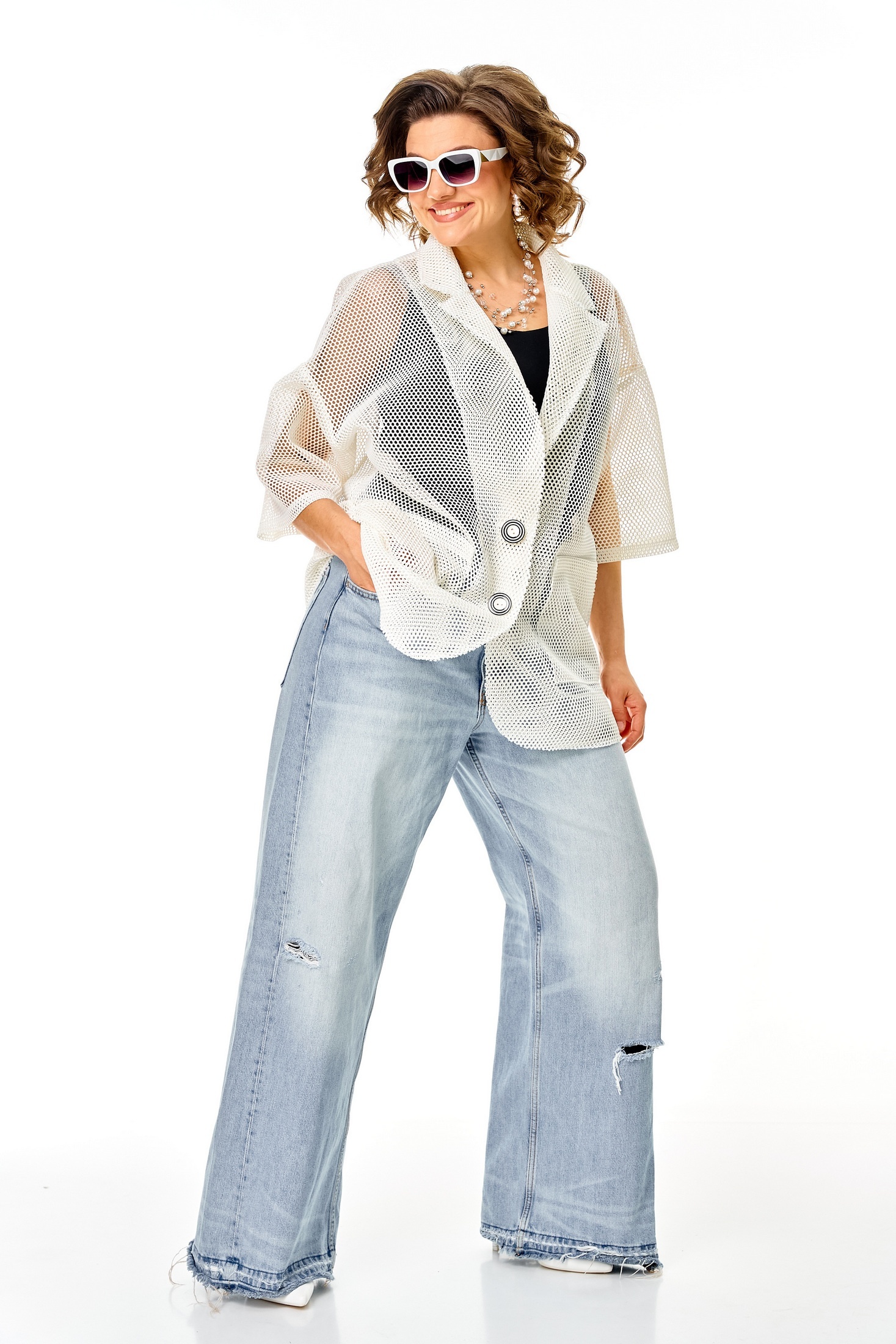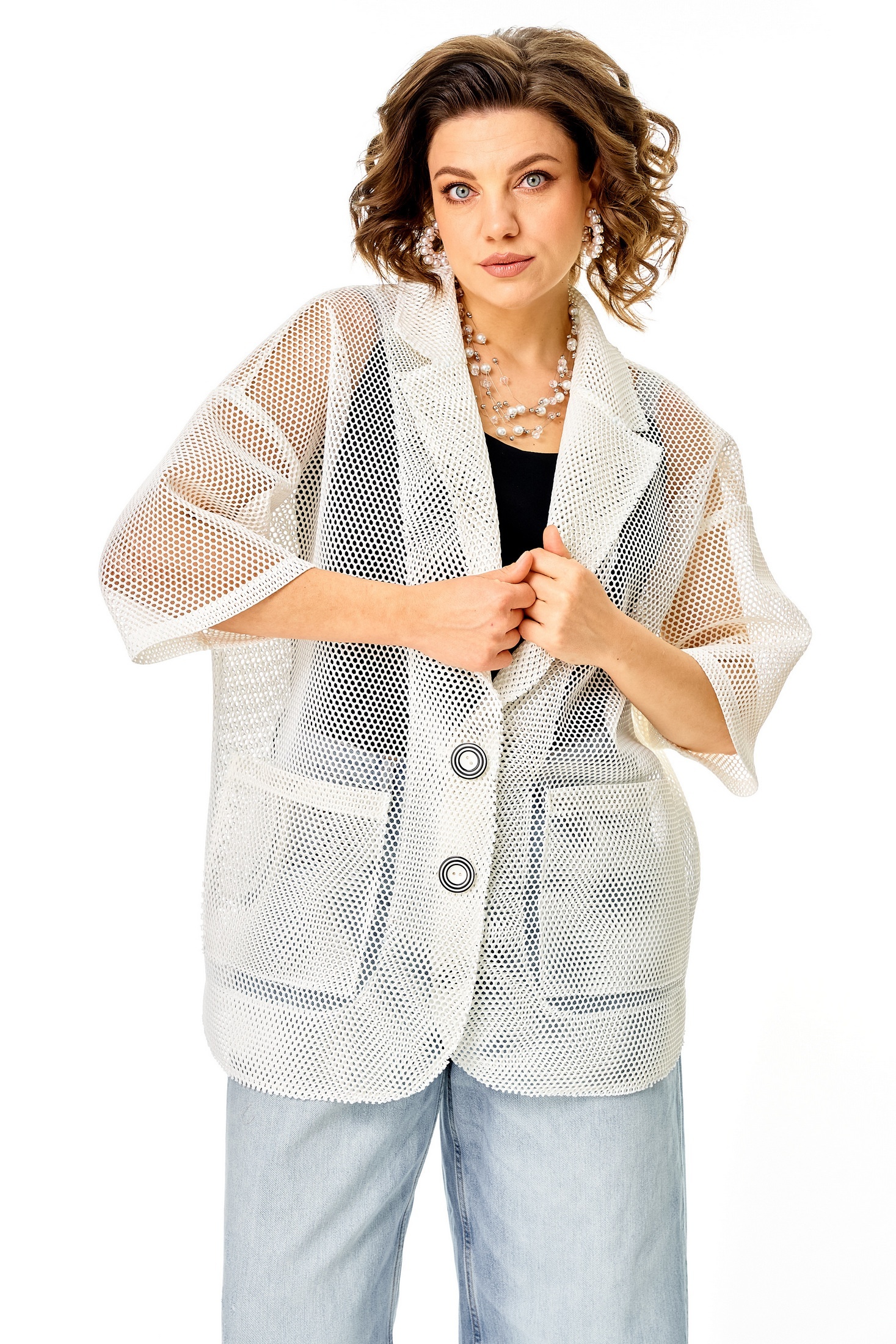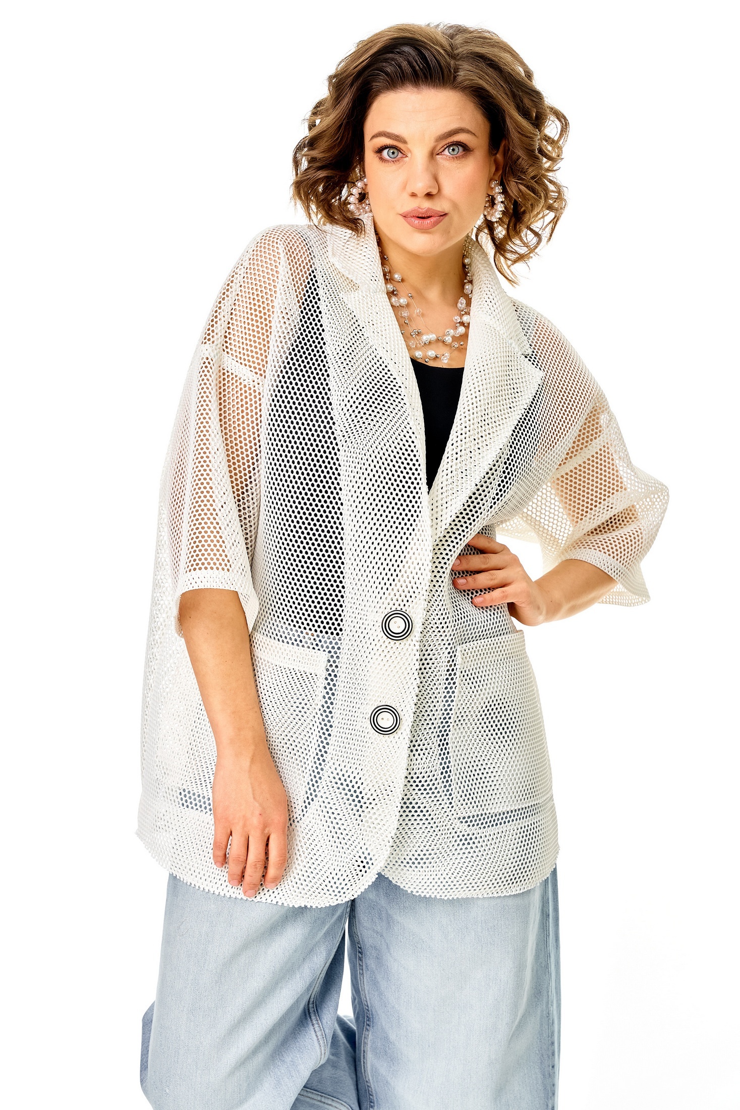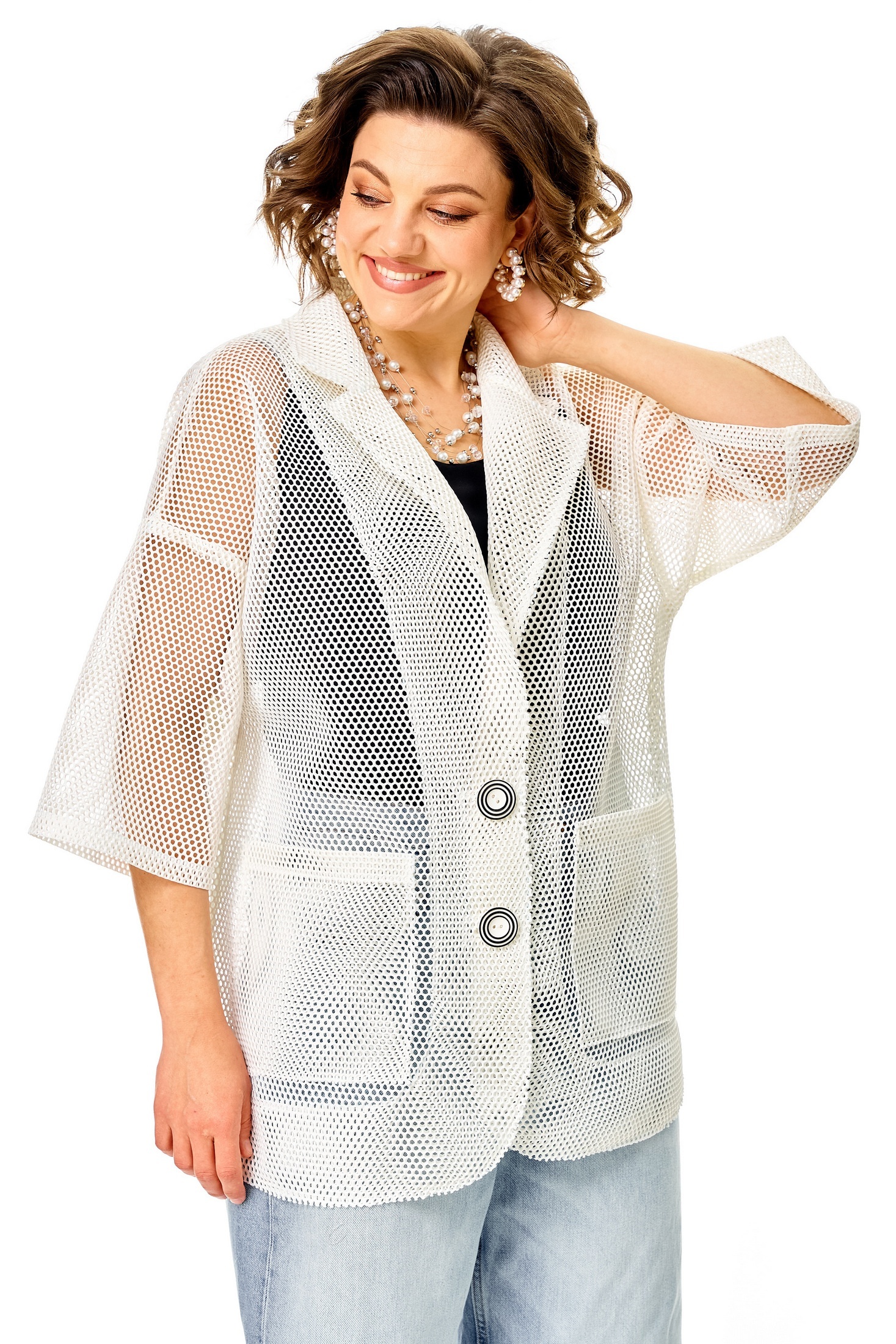 Жакет 1349 молочный Anastasia добавит свежести в ваш образ. Коллекция бренда Anastasia предлагает женский жакет из оригинального трикотажного полотна, напоминающего объемные соты. Модель прямого силуэта со спущенным рукавом и длиной 3/4 обеспечивает комфорт и стиль. Застежка на пеллю и пуговицу, а также пиждачный воротник подчеркивают утонченность фасона. Накладные карманы и фигурный низ добавляют функциональности и уникальности. Идеален для весеннего и летнего сезонов, подходит для повседневного ношения. Молочный цвет жакета легко комбинируется с различными элементами гардероба. Длина по спинке составляет от 76 до 80 см, длина рукава — 28 см, что делает его универсальным решением для вашего гардероба.