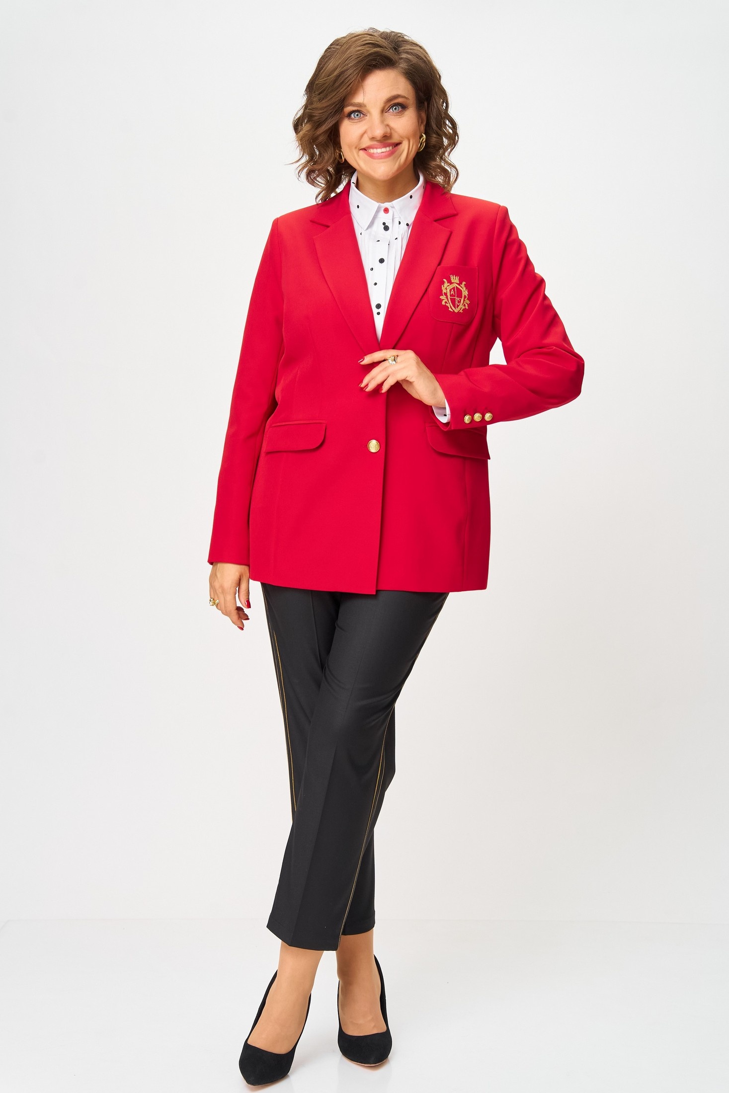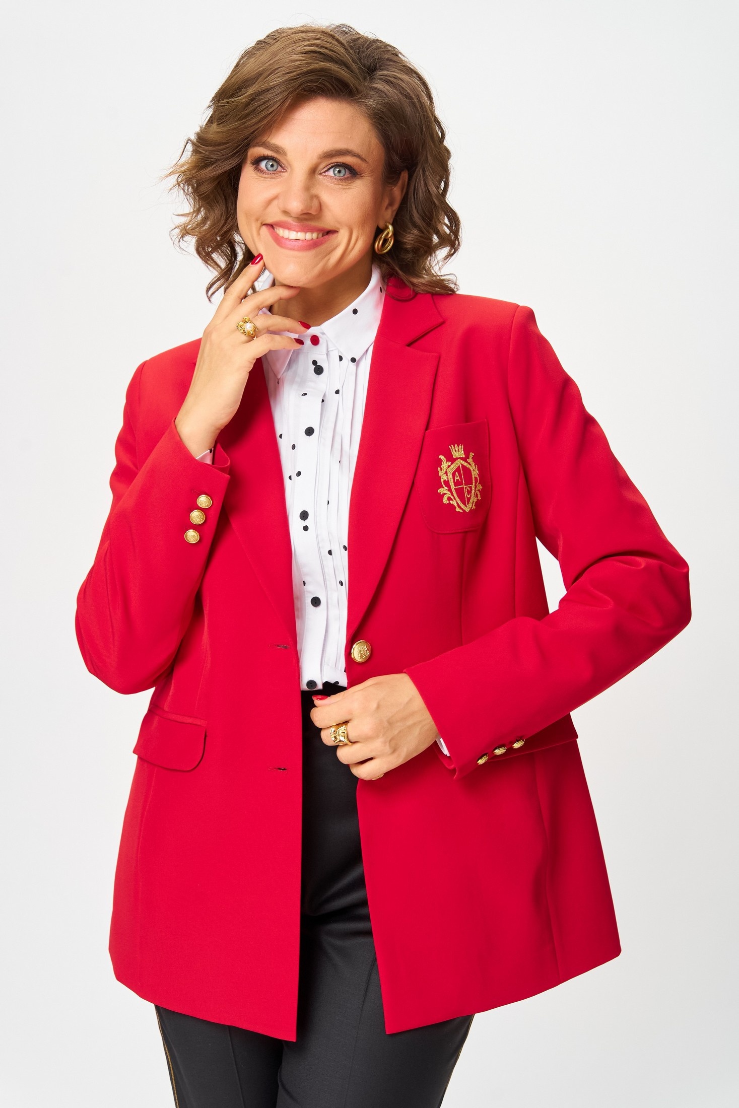 Прекрасный, стильный, яркий женский жакет не оставит равнодушной ни одну модницу! Полуприлегающий классический покрой подчеркнет достоинства фигуры, он идеально подойдет для создания разнообразных нарядов на каждый день благодаря универсальности и стильному дизайну. Жакет с застёжкой спереди на петли и пуговицы, с пиджачным воротником и втачными двухшовными рукавами. По переду выполнены боковые прорезные карманы с клапанами и нагрудный накладной карман с дизайнерской фирменной вышивкой, спинка со швами.