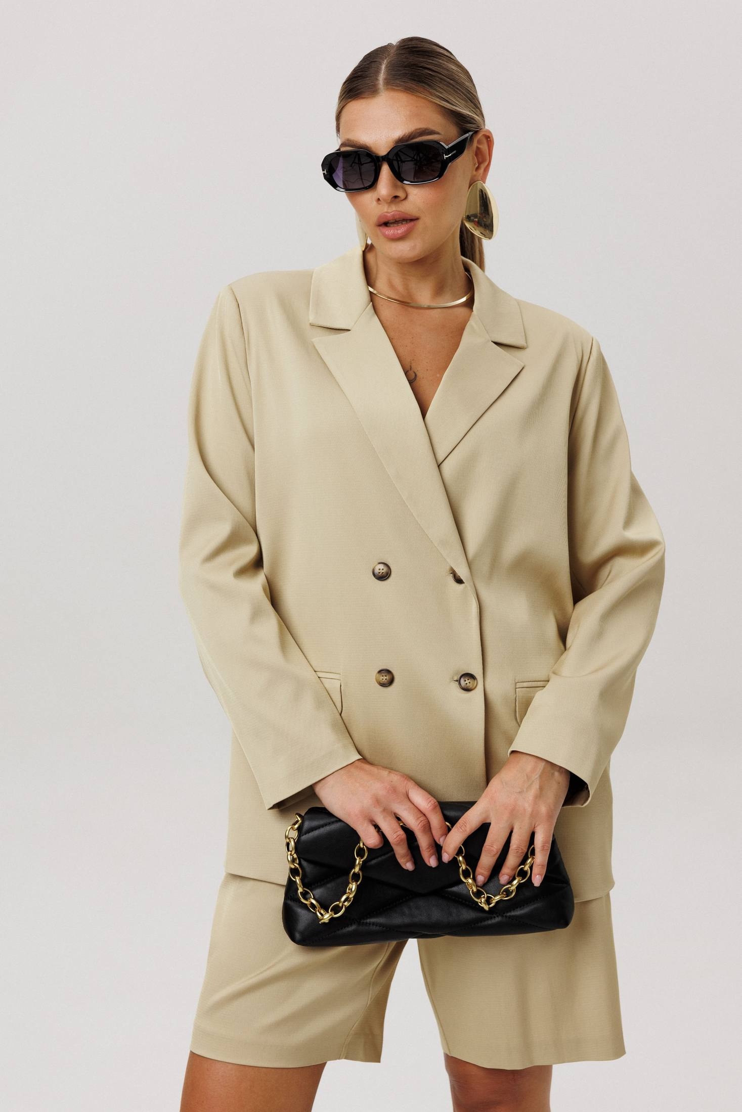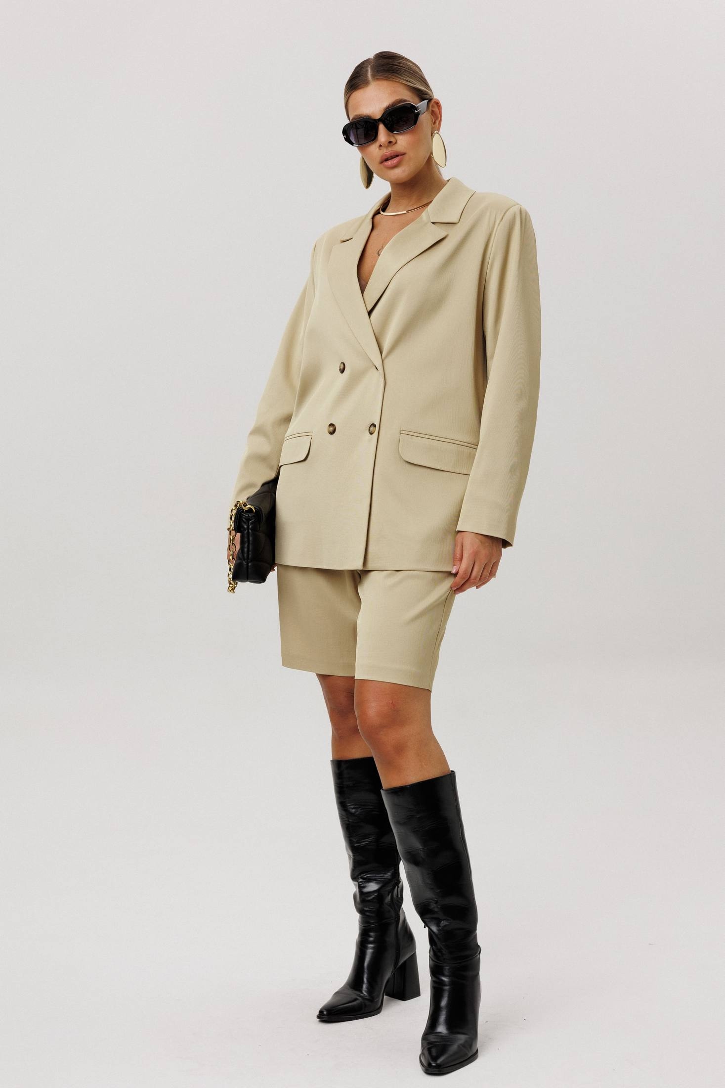 Двубортный жакет прямого силуэта с отложным воротником и лацканами актуален всегда: встреча с друзьями, поход на работу, деловая встреча или свидание.