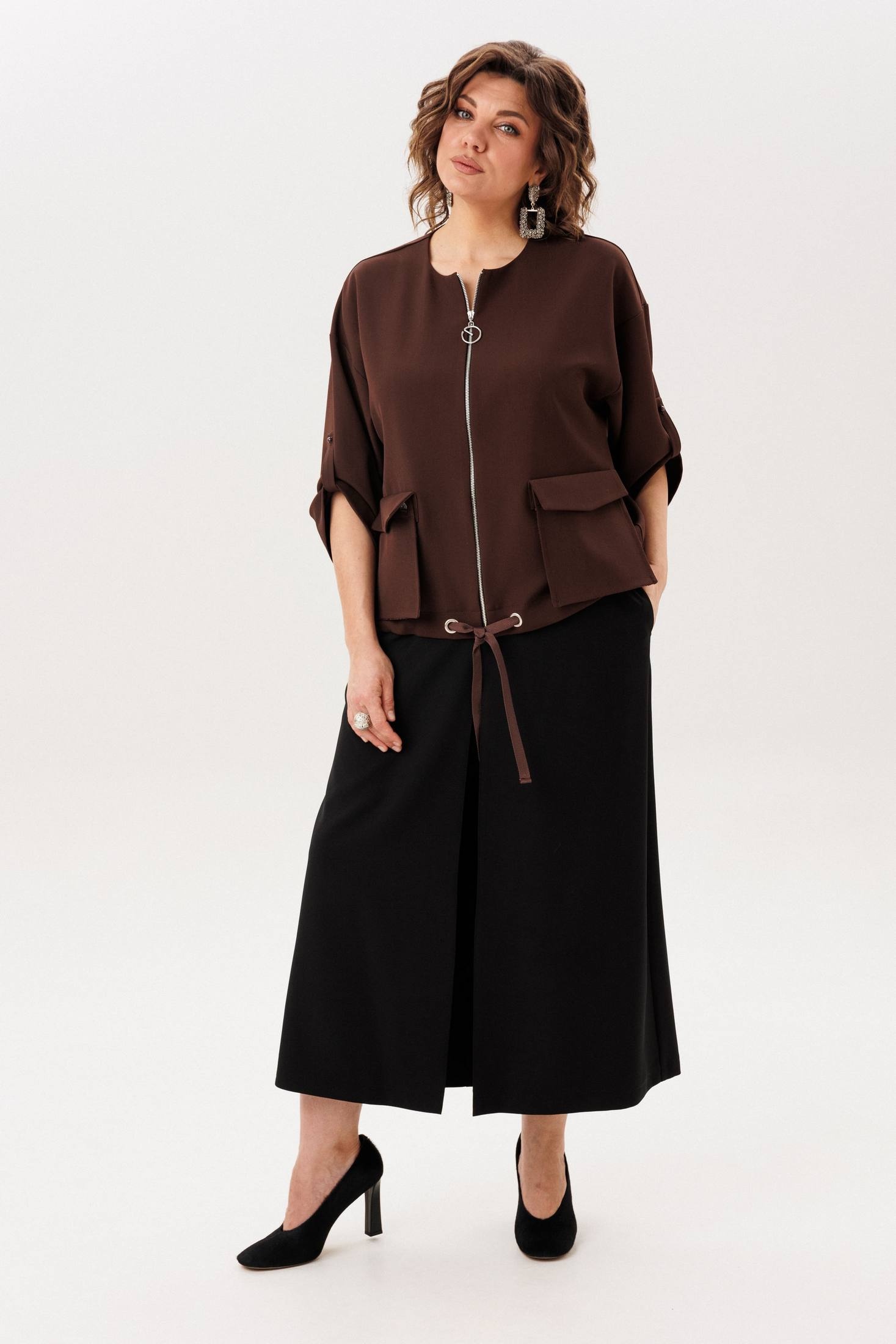 В этом джуте воплощена гармония сдержанной элегантности и современной функциональности. Прямой, ниспадающий силуэт со свободным, воздушным кроем дарит ощущение непринуждённого комфорта. Мягкая линия спущенного плеча плавно перетекает в лаконичный втачной рукав длиной три четверти, чью форму можно изящно зафиксировать на изящную пуговицу через тонкую петлю. Чистый круглый вырез горловины обрамляет лицо, подчеркивая строгость линий, которую лишь дополняют тонкие отделочные клапана.