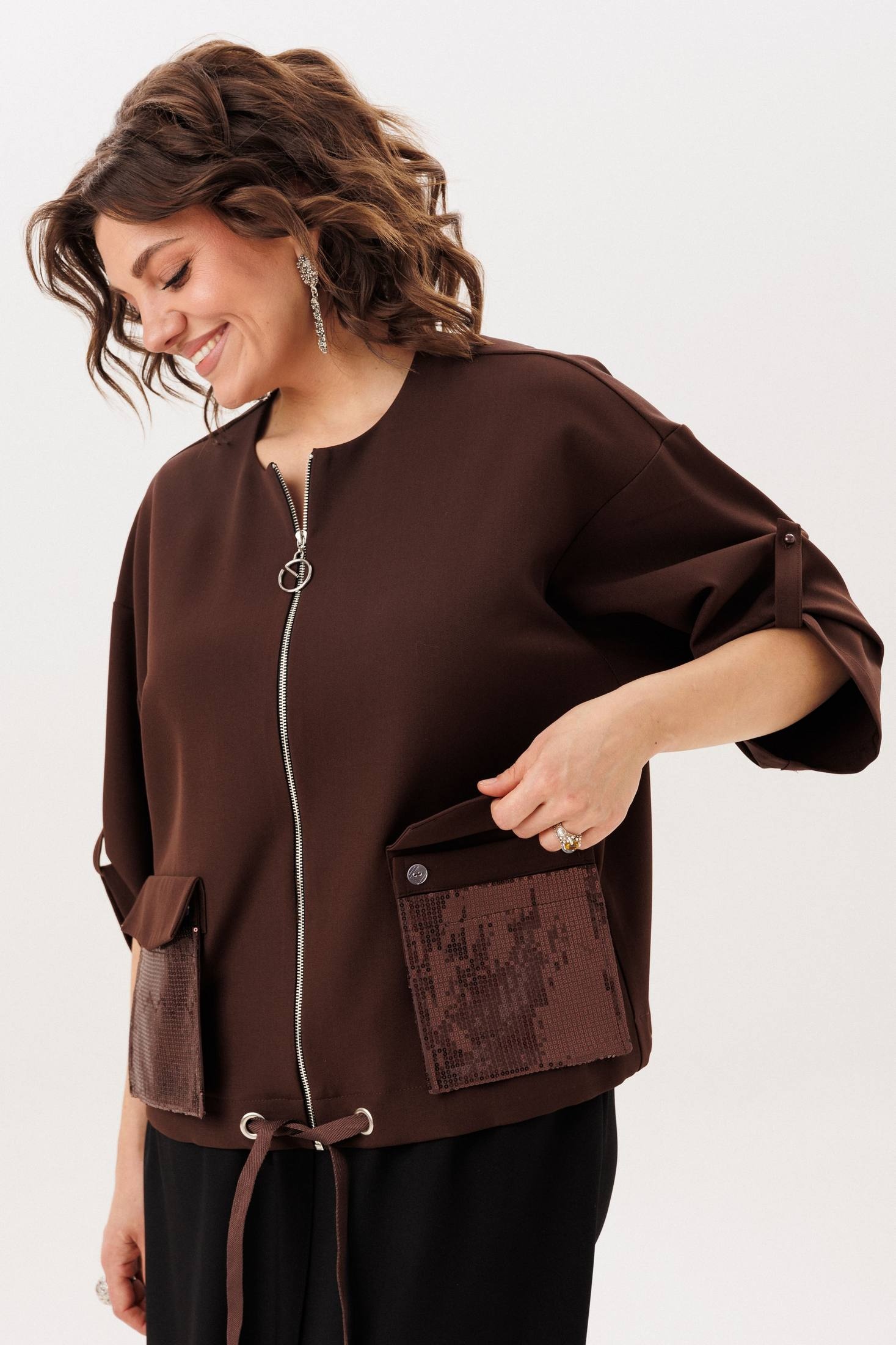 Этот джут в цвете «мокко сияние» от Анелли - воплощение универсальности: он столь же органично сочетается с лёгкими кюлотами и изящными босоножками, как и с классическими джинсами, являясь идеальным связующим звеном между дневной простотой и вечерним блеском.