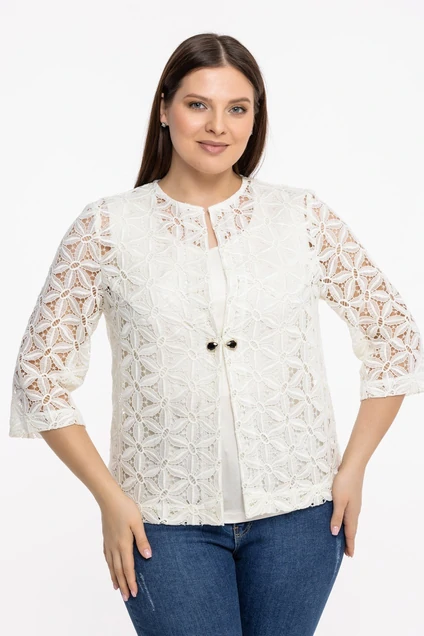 Жакет из кружева отлично подойдет для особых случаев, таких как свадьба, вечеринка или романтическое свидание. Кружево придаст образу нежность и изысканность, делая его более привлекательным и утонченным. Жакет женский прямого силуэта, с втачными рукавами 7/8 и центральной застежкой по переду.