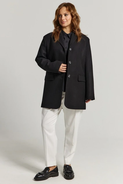 Жакет-пальто, выполнено в классическом стиле с современными акцентами. Создано из высококачественных материалов. Линии жакета прямые и четкие, воротник отложной. Рукава украшены рядом дизайнерских пуговиц на манжетах. Модель в едином размере (one size).