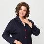 Жакет удлиненный, из текстильной ткани, полуприлегающего силуэта с центральной бортовой застежкой на пуговицы до линии перегиба лацкана. Спереди рельефные швы от плечевого шва, отрезной бочок и карман с клапаном. Спинка с рельефами от плечевого шва. Рукав втачной, двухшовный. Воротник пиджачного типа. Жакет на подкладке, длина по спинке 67 см, длина рукава 62 см