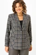 Жакет женский удлиненный, из текстильной ткани, на подкладке, полуприлегающего силуэта с центральной бортовой застежкой на пуговицы до линии перегиба лацкана. Спереди рельефные швы от плечевого шва, отрезной бочок и карман с клапаном. Спинка с рельефами от плечевого шва. Рукав втачной, двухшовный. Воротник пиджачного типа. Длина по спинке 66 см, длина рукава 62 см.