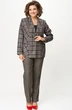 Жакет женский удлиненный, из текстильной ткани, на подкладке, полуприлегающего силуэта с центральной бортовой застежкой на пуговицы до линии перегиба лацкана. Спереди рельефные швы от плечевого шва, отрезной бочок и карман с клапаном. Спинка с рельефами от плечевого шва. Рукав втачной, двухшовный. Воротник пиджачного типа. Длина по спинке 66 см, длина рукава 62 см.
