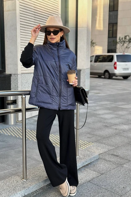 Жилет женский, прямого силуэта, длиной немного ниже линии бедер, со стеганного полотна.