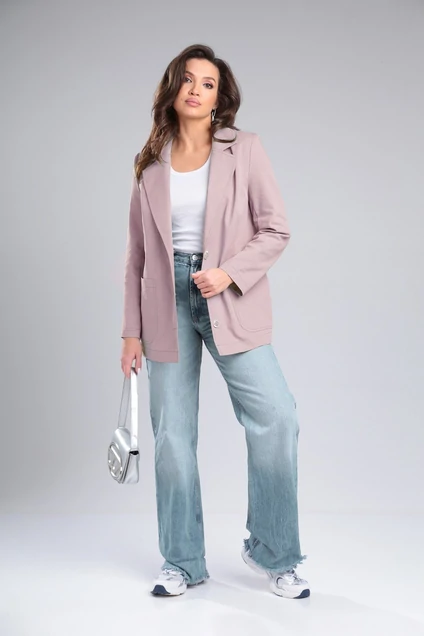 Классический весенне-летний жакет из хлопкового джинса, без подкладки прямого силуэта свободного кроя, рукав втачной двушовный, воротник отложной с лацканами. Все детали кроя с декоративной двойной отстрочкой.Длина изделия -71см, Длина рукава-61см.