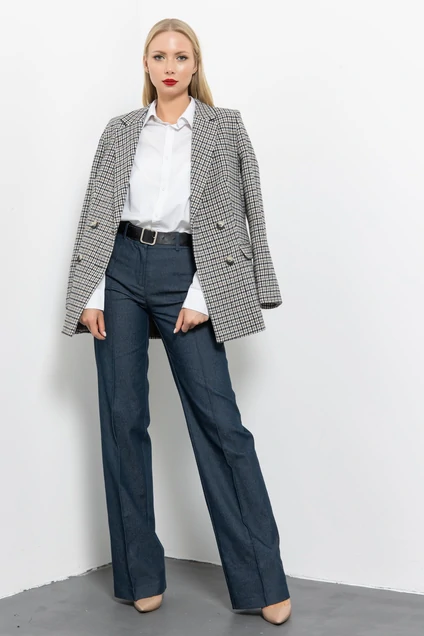 Женский двубортный пиджак полуприлегающего силуэта. Жакет выполнен из мягкого и теплого твида в клетку, его можно носить в качестве верхней одежды теплой осенью или весной. Пиджак на подкладке с воротником пиджачного типа с лацканом, карманы прорезные с клапаном. Идеальная посадка на фигуре, модные актуальные цвета сезона позволяют выглядеть неотразимо в любой ситуации. Это беспроигрышный вариант для Вашего неповторимого образа как в офисе, так и для особых случаев. Жакет идеально сочетается как с брюками, джинсами, так и с платьем. Он идеально дополнит ваш гардероб и станет базой. параметры модели на фото: Ог-86 см, От-66 см, Об-95 см, рост - 176 см. На ней размер 44-170.