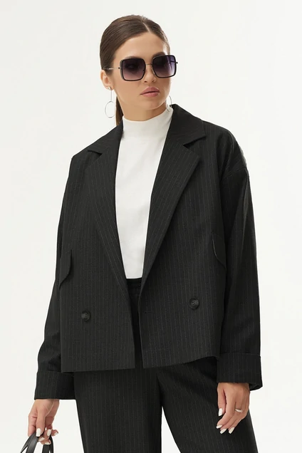 Стильный жакет актуального прямого силуэта, выполнен из костюмной ткани с вискозой, придающей ощущение теплоты и мягкости. Спущенная линия плеча и мягкая форма придают особый комфорт. Горловина оформлена лацканами. Застежка двубортная на петли-пуговицы. В бочках клапаны и карманы. Низ рукава с отворотом. Длина изделия в размерах 48-50 - 61 см, в размерах 52-54 - 62 см. Длина рукава - 51 см. Ширина изделия на уровне глубины проймы в 48 размере - 58 см, в 50 размере - 60 см, в 52 размере - 62 см, в 54 размере - 64 см. Сочетая жакет с брюками Elady 4297, 4304 и 4323, юбкой Elady 4324 и жилетом Elady 4314 можно создать современный образ.