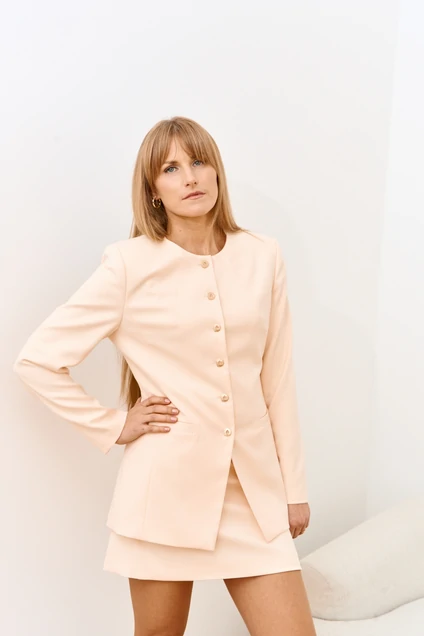 Жакет 24123 FAMA от коллекции бренда FAMA выполнен в элегантном персиковом оттенке. Легкая вискозная ткань с добавлением полиэстера и эластана обеспечивает комфорт и отлично держит форму. Прямой покрой с длиной изделия 72 см и акцентными металлическими пуговицами подчеркивают стильный офисный характер модели. Идеально подходит для осенне-весеннего сезона, подчеркивает фигуру и добавляет женственности. Яркий цвет и изысканный фасон делают жакет универсальным выбором для офиса или повседневных выходов.