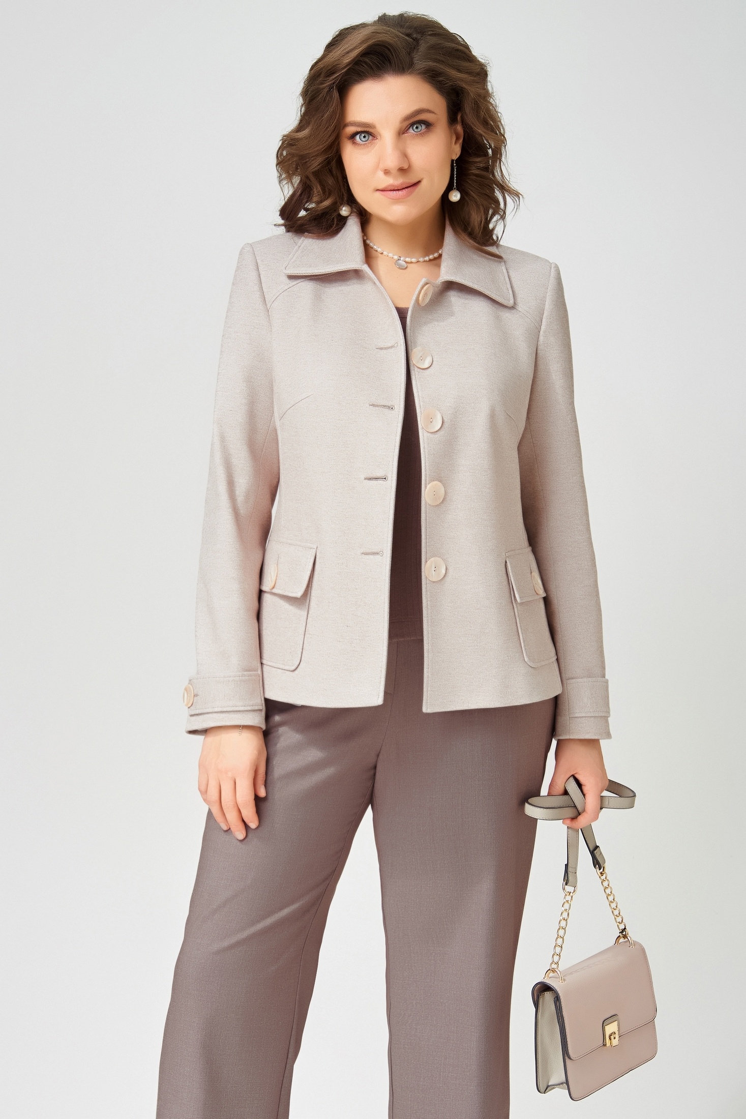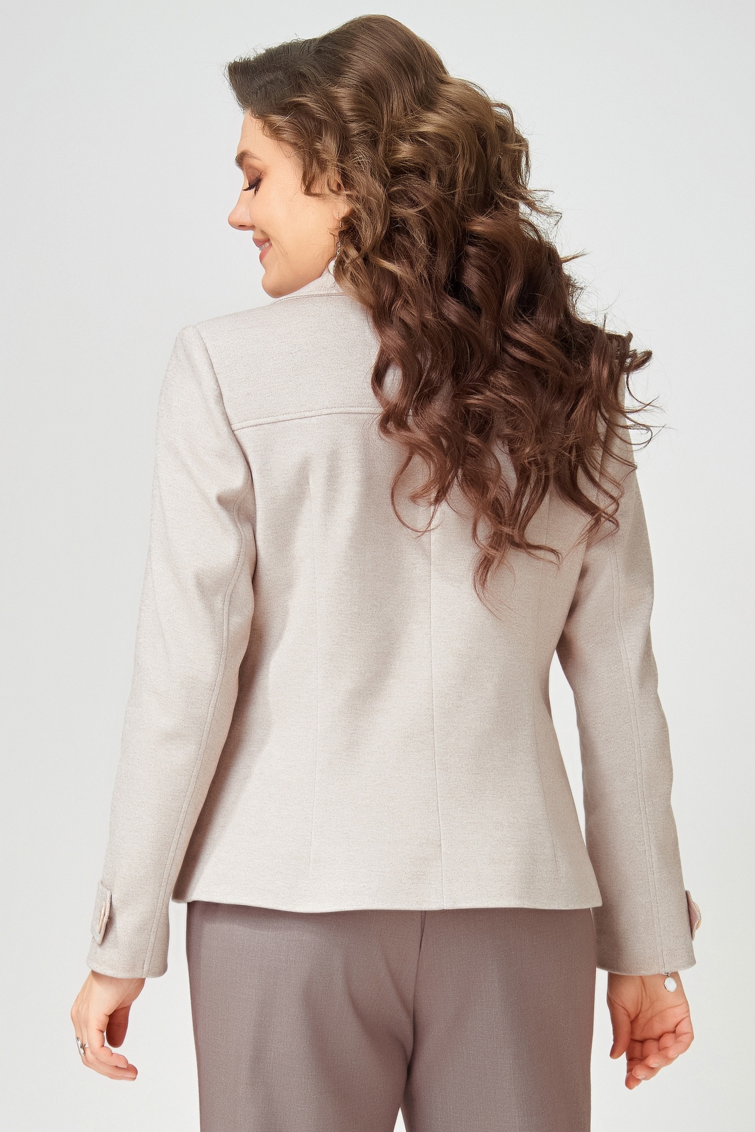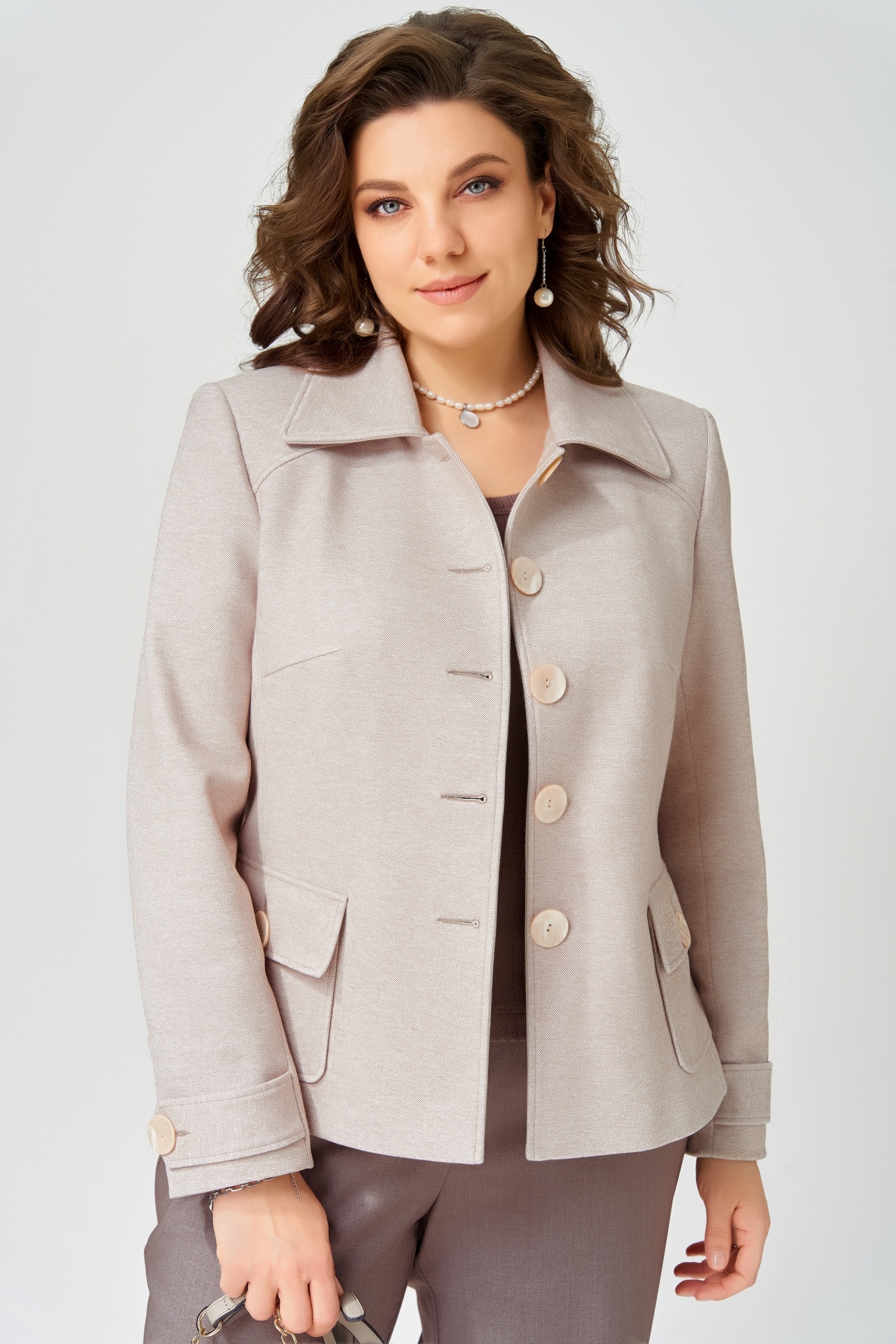 Жакет 20754 FITA от коллекции бренда Венциана выполнен из пальтово-костюмной ткани, сочетая 55% полиэстера, 25% шерсти и 20% вискозы. Эта комбинация материалов обеспечивает комфорт и прочность, делая жакет идеальным для осенне-зимнего сезона. Женский стильный жакет имеет полуприлегающий силуэт, подчеркивающий фигуру, а кокетки и накладные карманы с клапанами добавляют архитектурную чёткость образу. Двухшовные рукава с патами завершают внешний вид легкой строгостью. Бежевый оттенок жакета и его классический стиль делают его универсальным вариантом для офисного и повседневного гардероба.