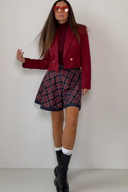 Жакет 1011 K_YOU_BRAND — стильное дополнение вашего гардероба. Коллекция бренда K_YOU_BRAND предлагает жакет полуприлегающего силуэта на подкладке с изысканной смещенной бортовой застежкой на петли и пуговицы. Воротник пиджачного типа добавляет классический штрих. Жакет выполнен из сочетания шерсти и полиэстера, обеспечивая комфорт и теплоту. Детали переда имеют рельефы и декоративные клапаны, а на левой полочке — прорезной карман с листочкой. Двухшовные рукава с отделочными пуговицами и имитацией шлицы завершают образ. Подходит для осени и весны, создавая образ с ноткой изысканности. Бордовый цвет подчеркивает актуальность и универсальность изделия.
