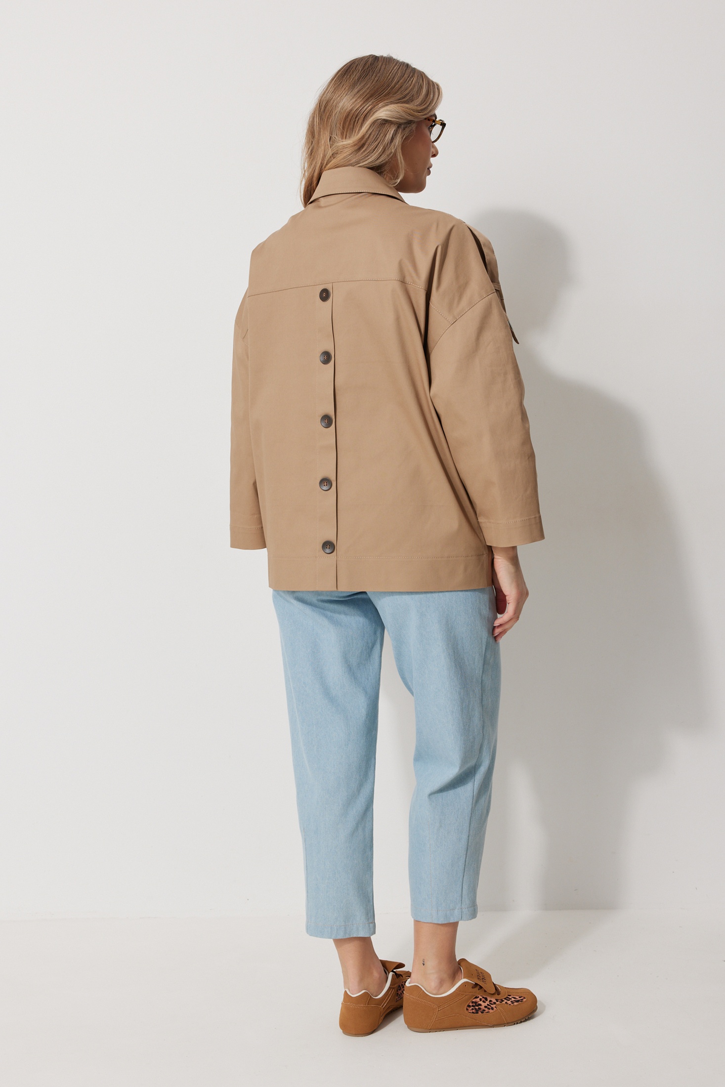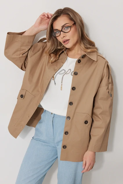 Жакет 2284 Kaloris от коллекции бренда Kaloris — идеальный выбор для стильных женщин. Выполненный из 100% хлопка, этот жакет обеспечивает комфорт и воздухопроницаемость. Прямой силуэт со спущенной линией плеча адаптируется под любой тип фигуры, а длина за бедро дарит свободу движений. Накладные карманы с клапаном и имитация застежки добавляют функциональности и интересный акцент. Центральная застежка на пуговицы и воротник рубашечного типа создают изящный, но повседневный образ. Пата со шлевками на рукавах предоставляют дополнительный элемент стиля. Цвет хаки делает его универсальным как для офиса, так и для прогулок. Длина по спинке 71 см, длина рукава 72,5 см, что позволяет носить его в любой сезон.