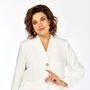 Женский жакет из вельветовой ткани темно-синего цвета. Модель полуприлегающего силуэта подчеркивает фигуру за счет присборенных рельефных швов на передней части и спинке, а также благодаря фигурным кокеткам. Воротник-стойка добавляет изысканности. Рукава длинные, декорированы средними швами и собраны на кулисы с завязками, что придает изысканный объем. Изделие застегивается на молнию, петлю и пуговицу. Длина жакета по спинке составляет 55 см, а длина рукава — 62 см. Элегантный выбор для делового или повседневного образа.