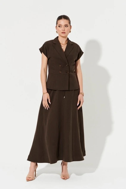 Жакет женский из смесовой ткани с добавление льна для повседневной носки. Жакет полуприлегающего силуэта. Жакет двубортный с застежкой на обметанные петли и пуговицы. Жакет отрезной по линии талии с имитацией пояса. Перед имеет два рельефа идущих от плечевого шва до отрезной части. Низ переда имеет две талиевые вытачки. Спинка со средним швом и двумя рельефами, идущими от плечевого шва до линии низа. Низ спинки имеет средний шов и две талиевые вытачки. Горловина обработана пиджачным воротником. Рукава цельнокроеные, короткие. Жакет на подкладке. Стильный жакет, который доставит вам массу удовольствия своим внешним видом. Данный жакет будет отлично смотреться на любой фигуре.