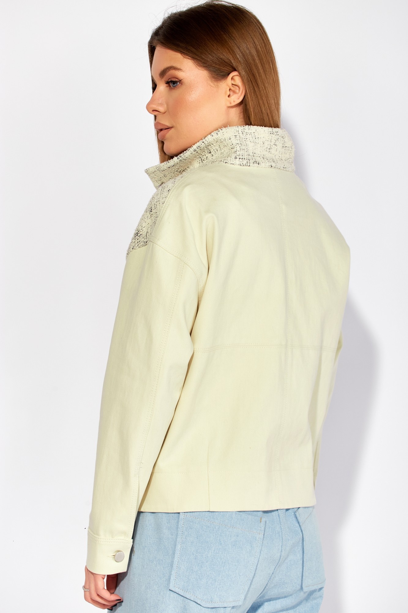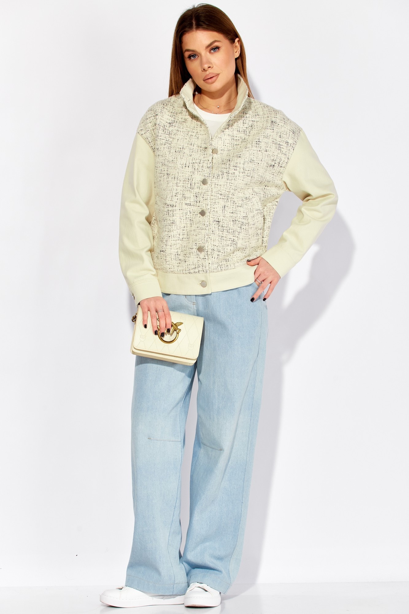 Жакет 424 экрю LAIKONY — это оригинальный женский жакет, создающий стильный акцент в вашем гардеробе. Коллекция бренда LAIKONY использует сочетание джинса и трикотажа, чтобы обеспечить комфорт и современный вид. Жакет имеет свободный силуэт до линии бедер, что придаёт ему универсальность. Вырез горловины с втачной стойкой и спущенная линия плеча создают расслабленное впечатление. Практичность дополняют центральная застежка на 7 пуговиц и наклонные прорезные карманы. Детали спинки с горизонтальным подрезом и вытачками акцентируют фигуру. Втачные рукава с разрезами в локтевом шве усиливают комфорт движения. Без подкладки, из хлопка, он идеален для весны и осени. Длина по спинке составляет 55,5-57,5 см, а рукава — 54 см. Этот жакет станет прекрасным выбором для вечерних прогулок.