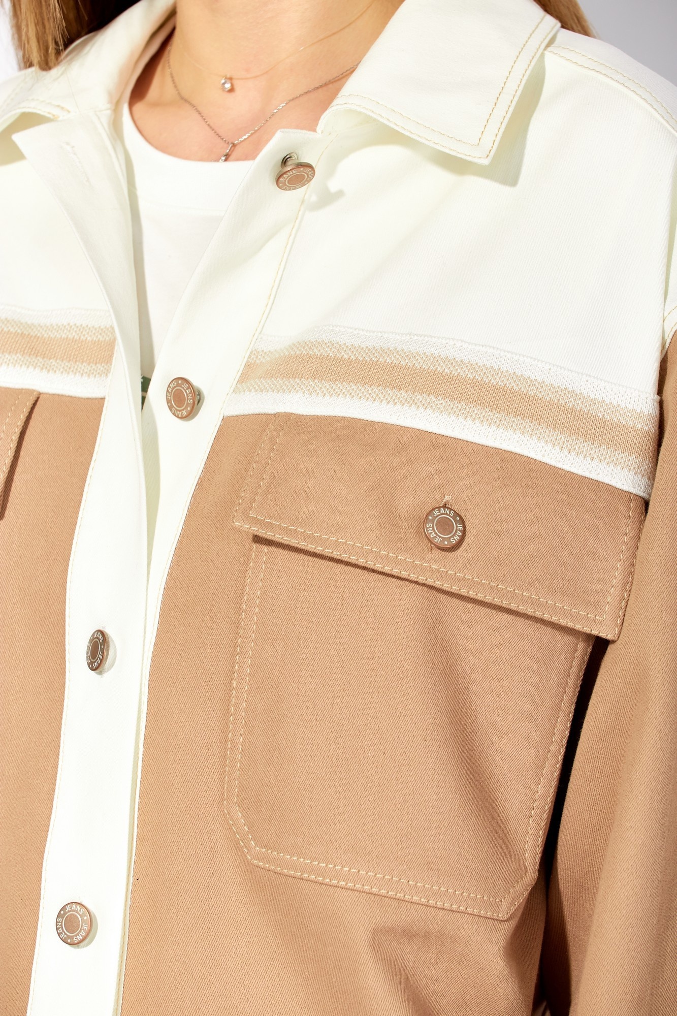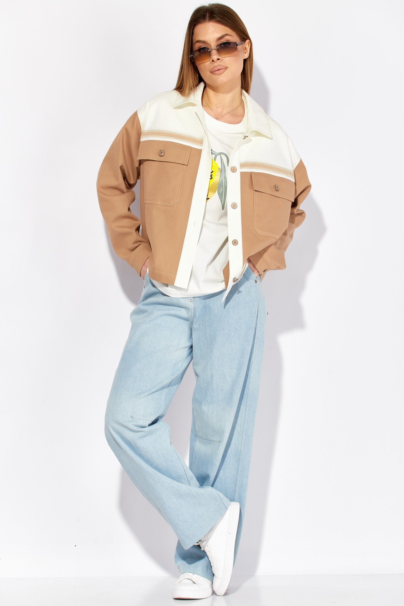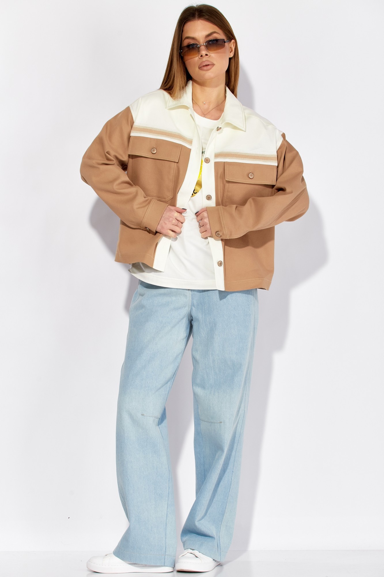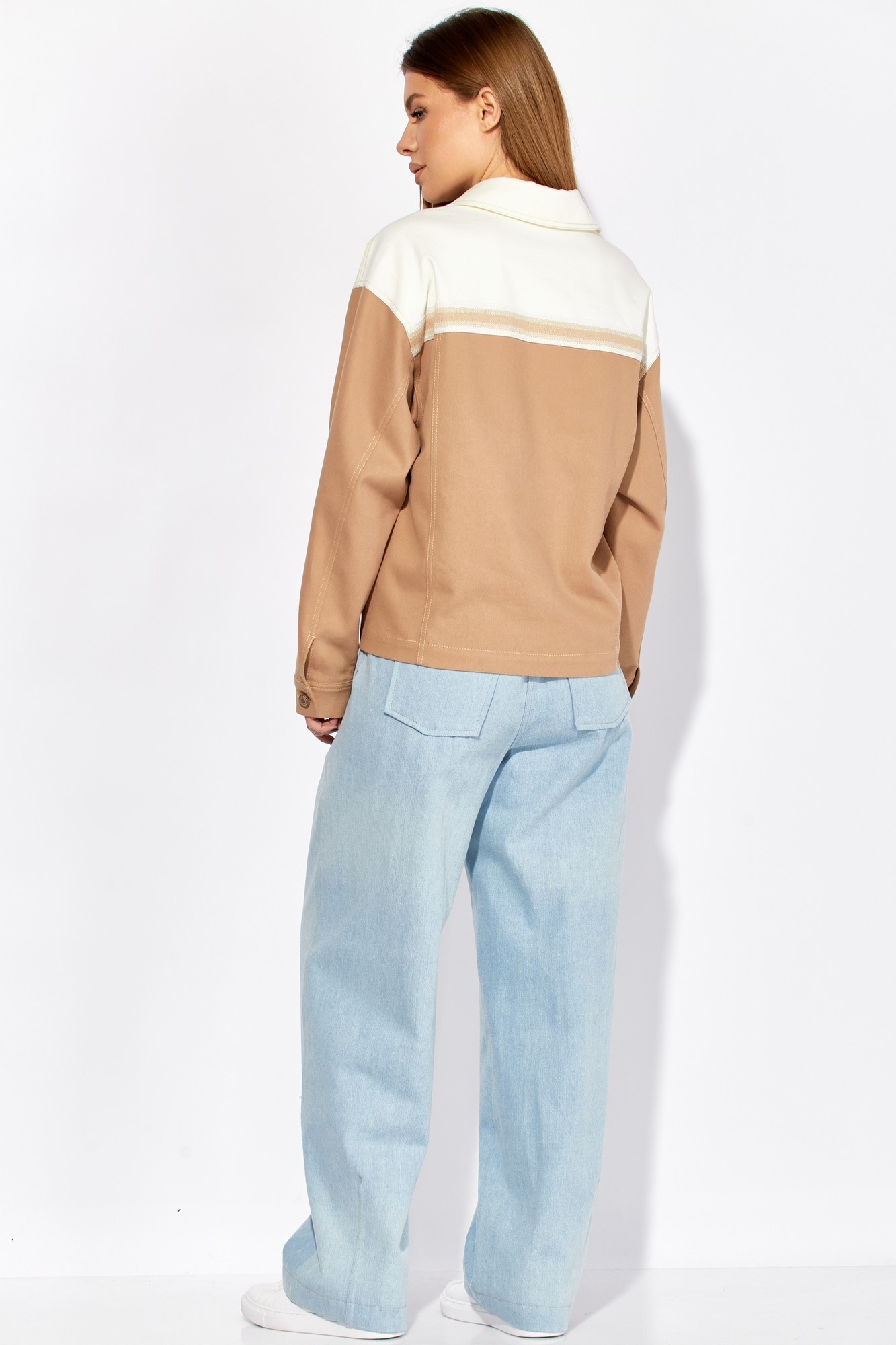 Жакет 724 песочный LAIKONY — это стильное дополнение к вашему гардеробу. Коллекция бренда LAIKONY предлагает свободный силуэт и удобный крой, который подойдёт для любого случая. Изготовленный из плотного джинса, жакет обеспечивает комфорт и долговечность. Центральная застежка на пуговицах, кокетки с декоративной тесьмой и накладные карманы с клапанами добавляют оригинальности. Песочный цвет делает его универсальным решением для весеннего сезона. Рукава с разрезом и манжетами подойдут для деловых и повседневных образов. Жакет длиной до линии бедер прекрасно смотрится как с джинсами, так и с брюками.